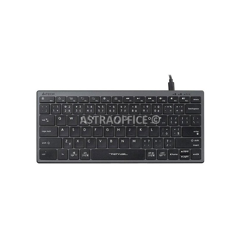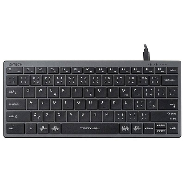 Drátová klávesnice A4Tech FX51Technická specifikace:• Kompaktní Scissor Switch klávesnice určena pro kancelářské a profesionální použití• CZ/SK rozložení kláves• Kompaktní velikost bez numerické části šetří místo a svou sníženou hmotností je ideální na přenášení• Možnost přepínání mezi operačními systémy pomocí klávesových zkratek: nbsp; nbsp; o Mac OS (Fn + O) nbsp; nbsp; o Windows (Fn + O)• Nízkozdvižná Scissor Switch mechanika kláves (zdvih pouze 1,5 mm)• Nízkoprofilové chocolate klávesy umožňují dlouhodobou práci bez únavy prstů• Multimediální klávesy: nbsp; nbsp; o domovská stránka nbsp; nbsp; o přepínání systému nbsp; nbsp; o zpět nbsp; nbsp; o vyhledávání nbsp; nbsp; o přepínání vstupů nbsp; nbsp; o screenshot nbsp; nbsp; o skok na předchozí skladbu nbsp; nbsp; o skok na následující skladbu nbsp; nbsp; o play amp; pauza nbsp; nbsp; o ztlumení zvuku nbsp; nbsp; o snížení hlasitosti nbsp; nbsp; o zvýšení hlasitosti• Funkce FN Lock pro přístup ke klávesovým zkratkám jedním dotykem• Napájení přes napájecí port USB-C (Type C)• Součástí dodávky je kabel: nbsp; nbsp; o 150 cm napájecí USB-C (Type C) - USB-A• Integrované vyklápěcí nožičky pro výškové polohování klávesnice• Protiskluzové gumové nožičky pro maximální stabilitu• Snadná instalace Plug amp; Play bez nutnosti instalace a stahování ovladačů (USB kabel stačí pouze připojit k USB portu počítače nebo notebooku)• Univerzální kompatibilita operačních systémů Windows, Mac OSZákladní specifikace:Typ klávesnice:nbsp; membránová Typ připojení:nbsp; USBMultimediální klávesy:nbsp;AnoTyp klávesnízkoprofilovéLayout:CZ/SKBarva:šedáDélka kabelu:1.5 mRozměr:285 x 124 x 17 mmHmotnost:335 g .popisTabulka td { border: 1px solid #252424; min-width: 5rem;padding: 0.15rem 0.35rem; } .popisTabulka tr:nth-of-type(2n) { background-color: #e3e9eb; } nbsp;
