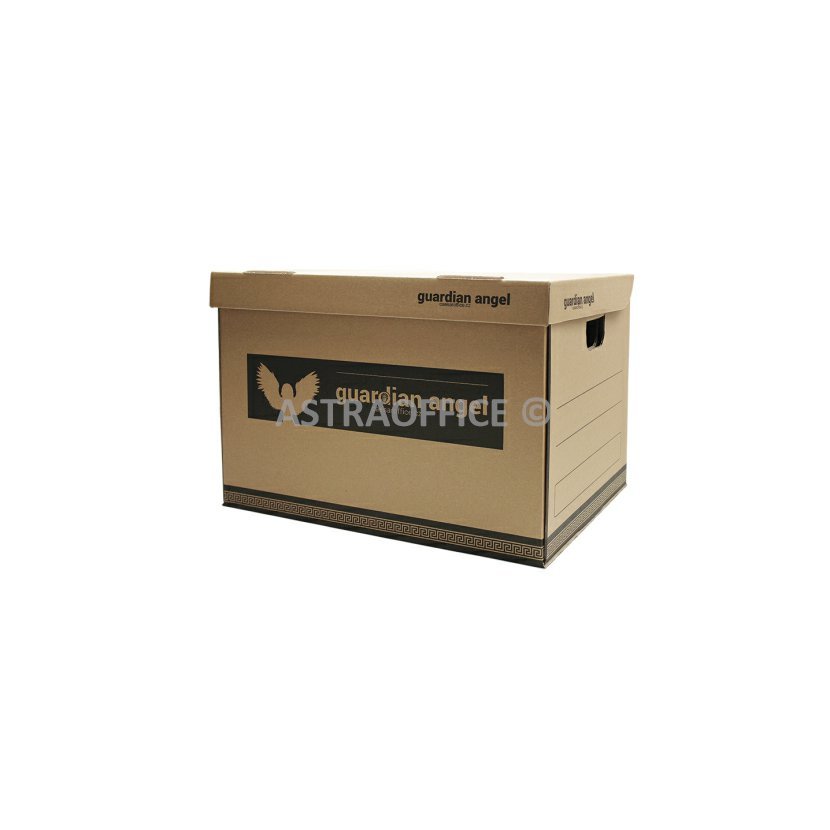 Pevný archivační box - kontejner na 5 ks archivačních krabic nebo 5 ks pořadačů. Rozměr 470x350x310mm. Materiál: Kvalitní hnědo-hnědá 3VL. Výrobek je označen značkou "Práce postižených". Cena za 1 ks