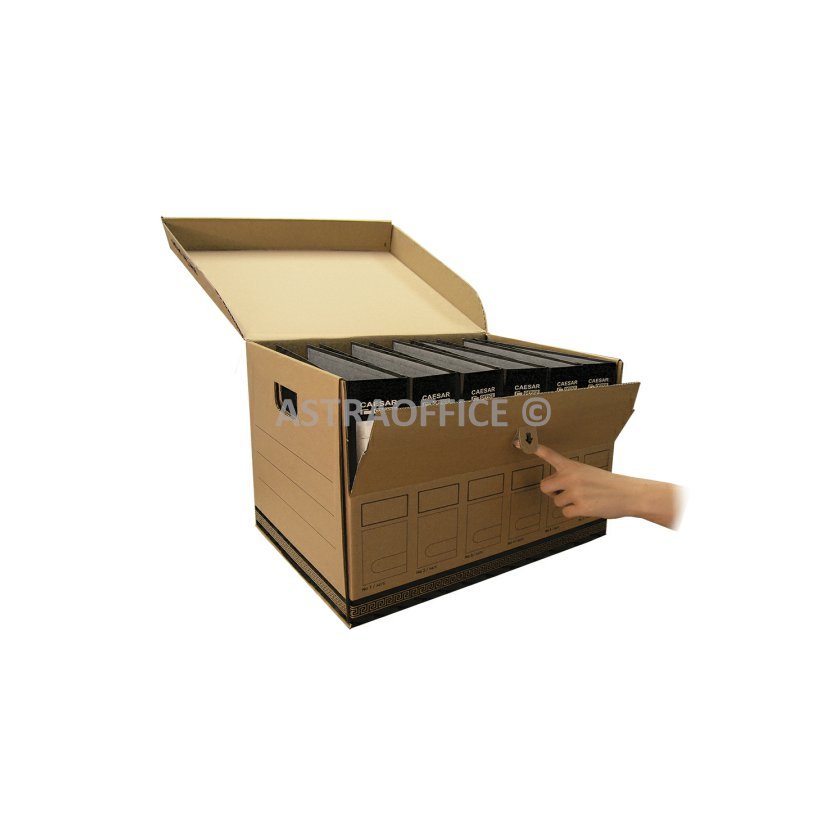 Velmi kvalitní a pevný archivační kontejner s kapacitou na 5 ks pořadačů (vkládaných na stojato nebo volně ložený obsah) s horním a bočním otevíráním, aby bylo možné ihned nahlédnout pohodlně do obsahu kontejneru bez nutnosti přeskládávání krabic, které jsou stohovány na sebe. Nosnost více než 25 kg, stohovatelné (lze umístit více plných kontejnerů nad sebou). Vlastní výroba. Speciálně navržený design a tvar, který zajistí vysokou míru použitelnosti. Rozměr 470x310x320mm.