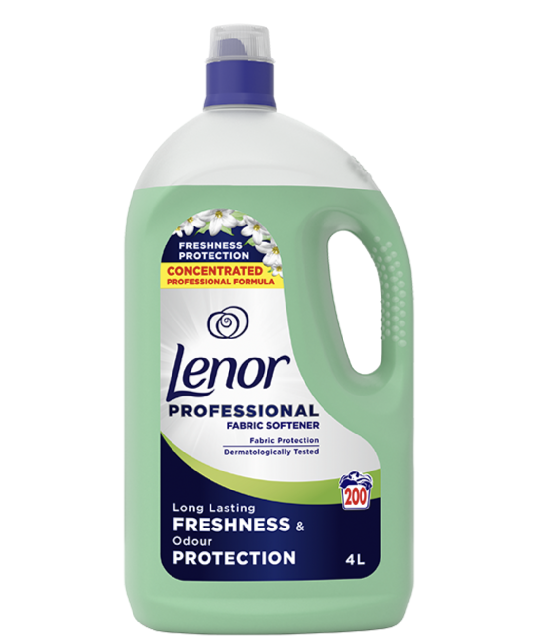Lenor Professional Freshness Protection je profesionální aviváž vyvinutá tak, aby odstraňovala nepříjemné pachy a zároveň prodlužovala životnost prádla. Speciální formule pro profesionální použití používá silnější aktivní složky. Obsahuje technologii zjemňování, která chrání vlákna před poškozením. Pomáhá tak prodloužit životnost prádla a šetří peníze za nákup nového. Obsahuje unikátní parfémové technologie pro odstranění zápachu. Zanechává na prádle parfémové mikro kapsle, které se třením postupně uvolňují a dodávají mu dlouhotrvající vůni. Díky difúzní technologii se vůně z prádla uvolňuje postupně a zanechává jej dlouhodobě svěží i po sušení v sušičce. Redukuje výskyt statické přilnavosti na tkanině.