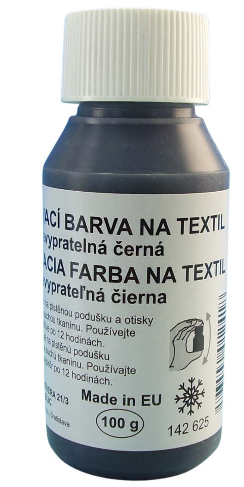 Barva na textil nevypratelná je speciální barva určená pro trvalé zdobení a značení textilních materiálů. Po zaschnutí (případně zažehlení dle typu barvy) je odolná vůči praní a běžnému opotřebení, zachovává si sytost a pružnost bez praskání. Je vhodná pro bavlnu i další textilie a ideální pro kreativní tvoření, dekorování oděvů, tašek či bytových doplňků i pro praktické popisování textilu.