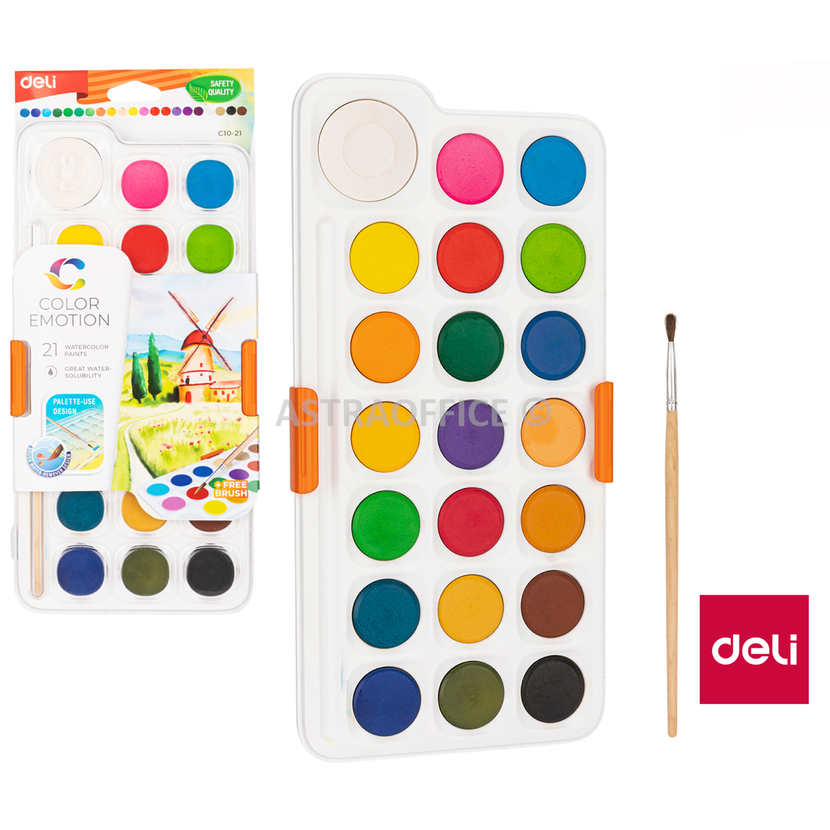 barvy vodové DELI/21 barev r=28mm EC10-21