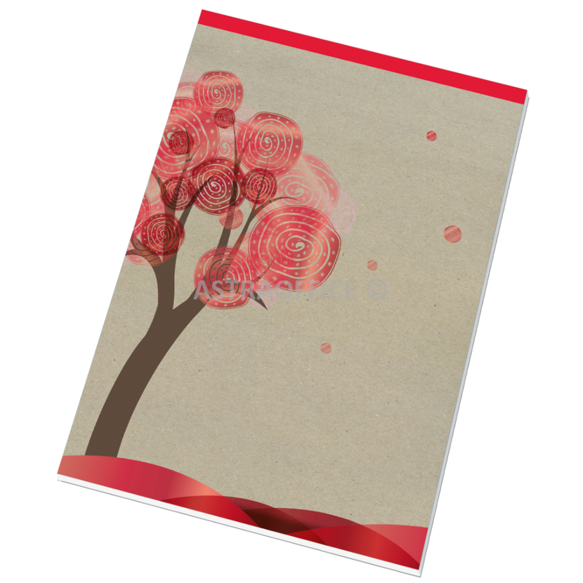 Univerzální linkovaný blok z recyklovaného papíru s perforací, sešitý skobami na kratší straně.