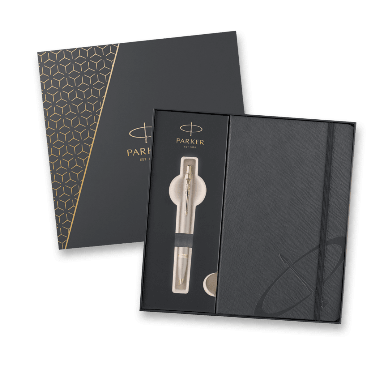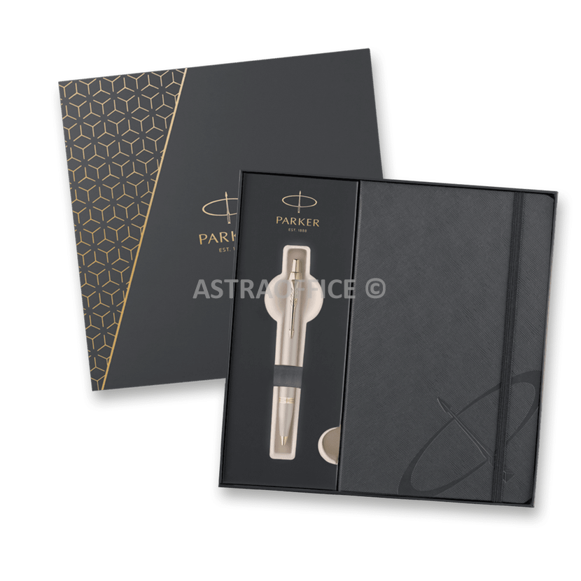 Dárková kazeta s kuličkovým perem Parker IM Monochrome Champagne s mosazným tělem pokrytým saténově matným lakem v barvě champagne. V kombinaci s doplňky potaženými pomocí techniky PVD odolnou lesklou barvou champagne. Dárková kazeta obsahuje:, * kuličkové pero Parker IM Monochrome Champagne, * šedý zápisník Parker, * voucher Akademie psaní