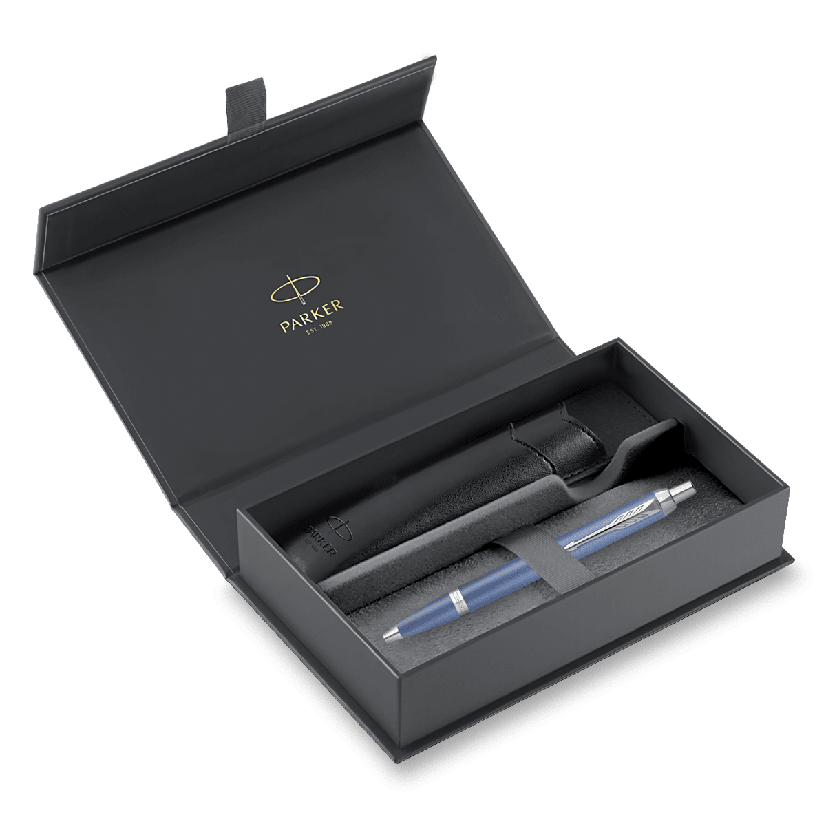 Dárková kazeta s kuličkovým perem Parker IM Writing Rituals Blue CT s mosazným tělem pokrytým saténově metalickým barevným lakem. V kombinaci s doplňky pokovenými chromem. Dárková kazeta obsahuje:, * kuličkové pero Parker IM Writing Rituals Blue CT, * černé PU pouzdro Parker, * voucher Akademie psaní