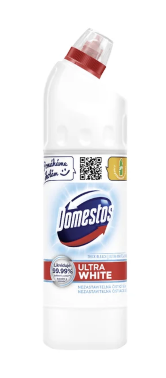 Extra hustý gel Domestos Ultra White & Shine obsahuje aktivní molekuly, které chrání WC před vodním kamenem. Odstraňuje odolné skvrny a zanechává čistou toaletu.