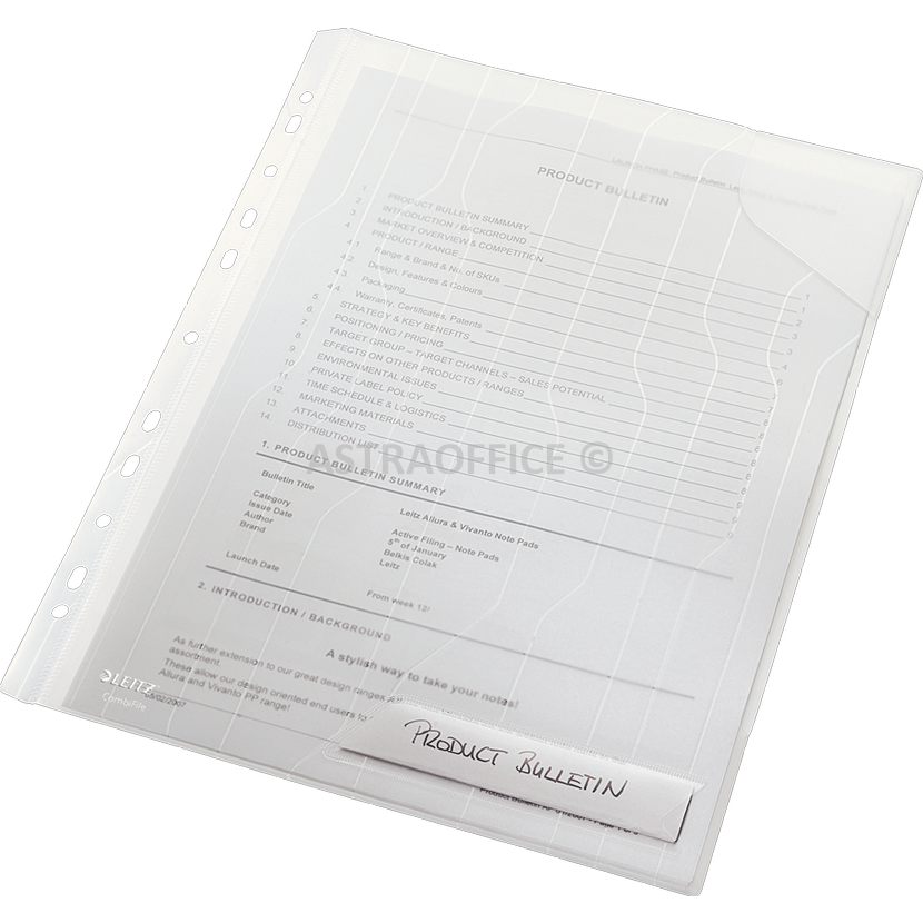 Kombinace desek a závěsné kapsy umožňuje flexibilní použití. Unikátní skrývatelná závěsná multiperforace.Kapsa v rohu desek chránící vložené dokumentySnadný přístup k dokumentůmVhodné na cesty a přenášení dokumentůKapacita až 40 listů papíru (80 g/m² )