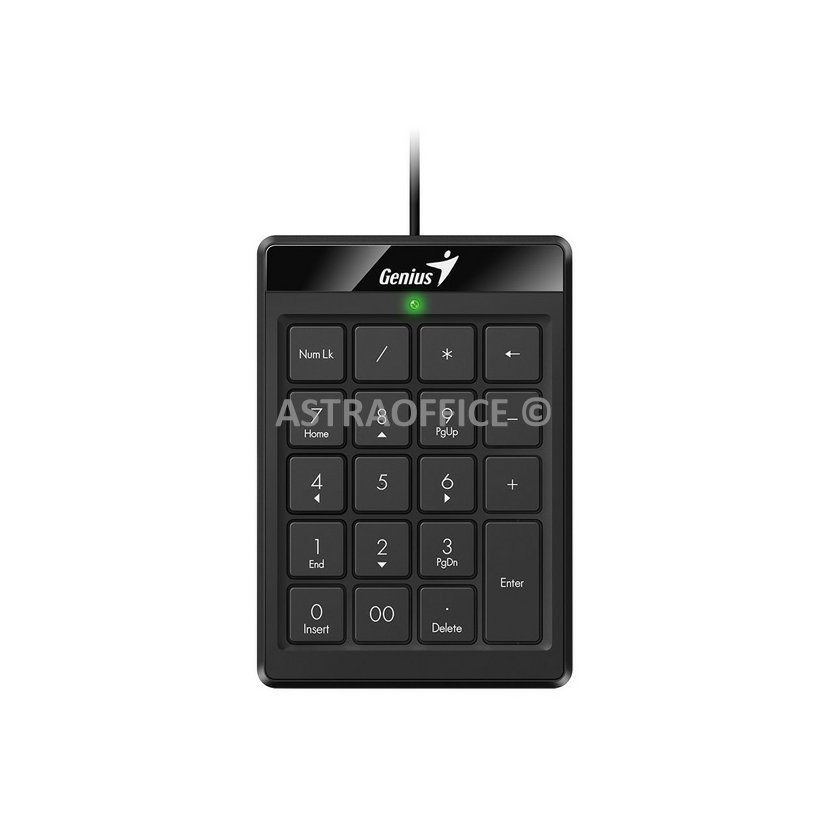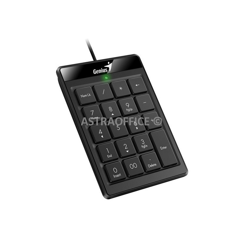 Genius NumPad 110Extérní numerická klávesnice Genius NumPad 110 ve slim provedení je ideální pomocník pro zadávání číselných údajů do vašeho notebooku či PC. K počítači připojíte tuto klávesnici přes 90 cm dlouhý kabel s USB portem.Základní specifikaceTyp zařízení: numerická klávesnice Rozhraní: USBRozměry: 131,9 x 91,9 x 20 mmHmotnost : 119 gBarva: ČernáParametryZnačka: GeniusUpřesnění typu: KlávesniceNumerická klávesnice: AnoPodsvícená klávesnice: NeMultimediální klávesy: NeMechanické klávesy: NeTyp kláves: chicletBezdrátové připojení: NeDrátové připojení: AnoRozhraní: USBzáruka: 24 měsíců