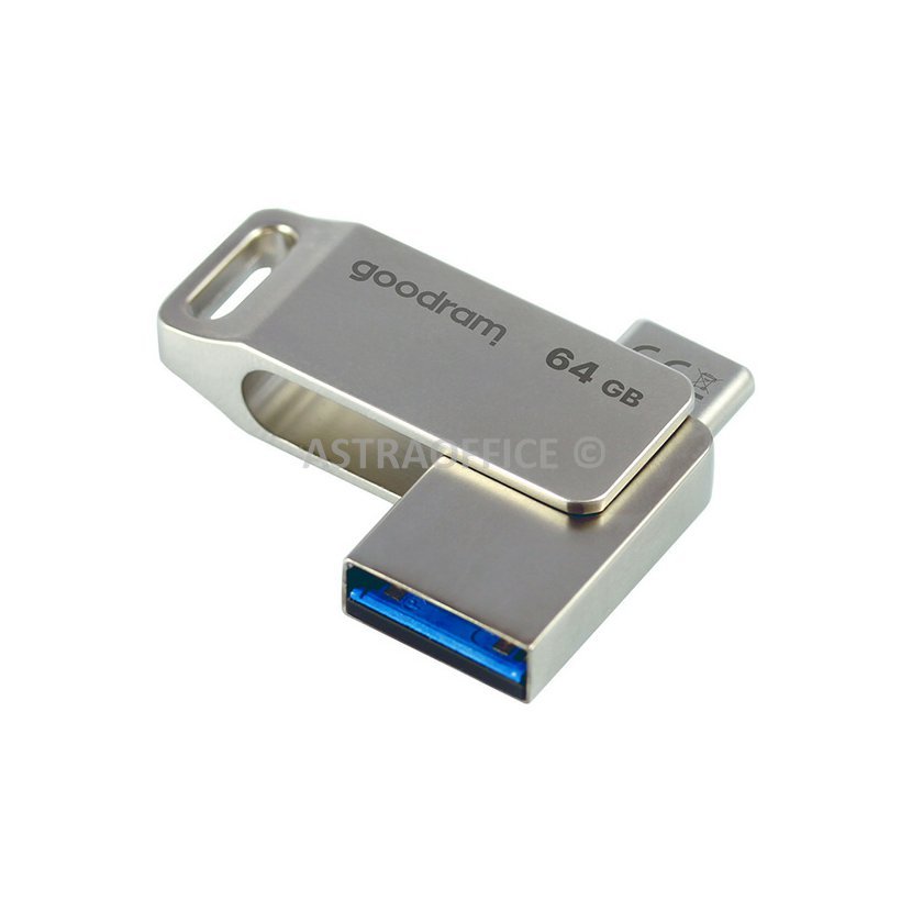 Parametry produktu Goodram USB flash disk, USB 3.0, 64GB, ODA3, stříbrný, ODA3-0640S0R11, USB A / USB C, s otočnou krytkou