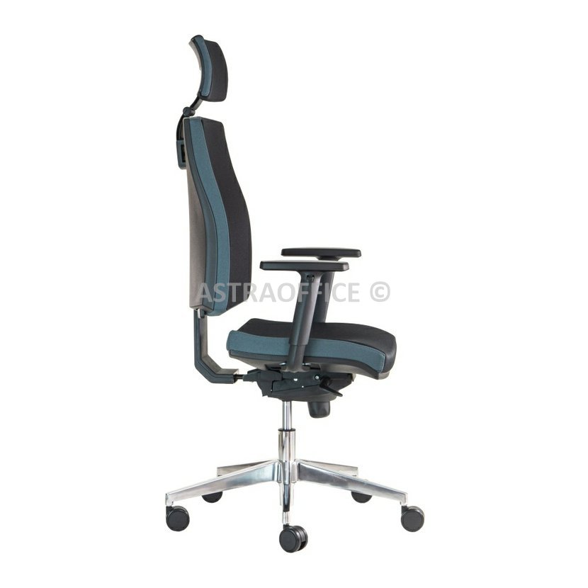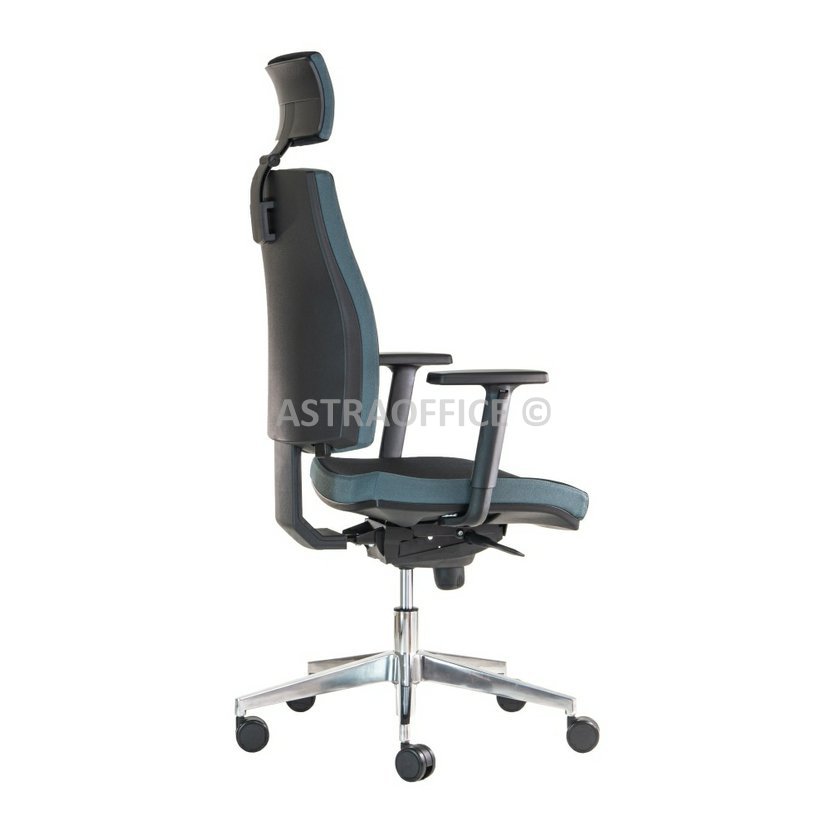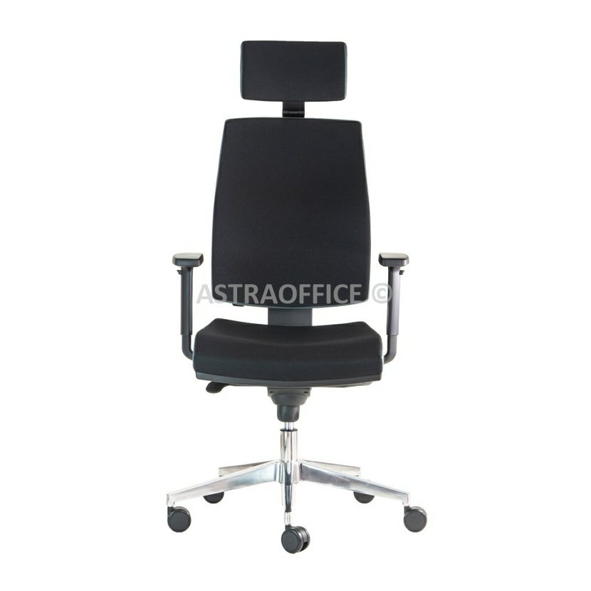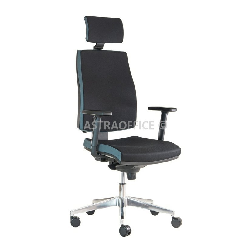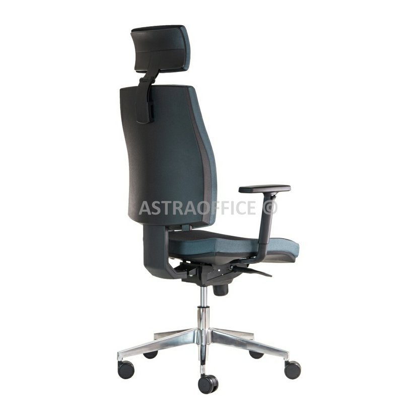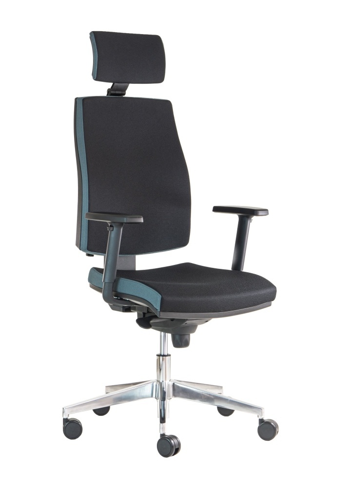 Kancelářská židle JOB s podhlavníkem má velmi kvalitní a ergonomicky propracované čalounění. Výplně sedáku a opěráku jsou z velmi odolné vstřikované pěny, odolné vůči prosezení. Součástí je synchronní mechanika s blokací v 5 polohách a nastavením tuhosti přítlaku zad, výškově nastavitelné područky s měkčeným topem a čalouněný, úhlově i výškově, nastavitelný podhlavník. Základem židle je kříž z leštěného hliníku. kvalitní potahová látka Bondai 8033 černá, boky Bondai 8010 šedá, 150.000 cyklů vysoce odolná vstřikovaná (injektovaná) polyuretanová pěna v sedáku a opěráku prošité hrany čalounění synchronní mechanika s blokací v 5 polohách, nastavení tuhosti přítlaku zad výškově stavitelný opěrák s mechanickým zámkem výškově a úhlově stavitelný čalouněný podhlavník výškově stavitelné područky s měkčeným topem leštěný hliníkový kříž LOOP ø 700 mm velká plastová kolečka ø 65 mm nosnost 130 kg záruka 5 let certifikovaný český výrobek dle ČSN EN 1335