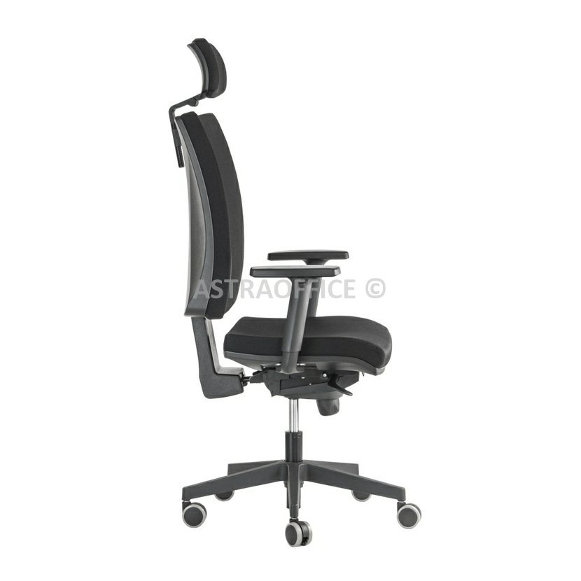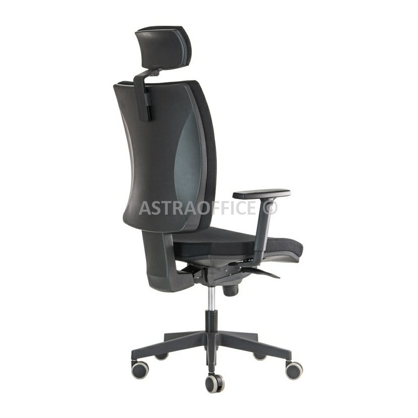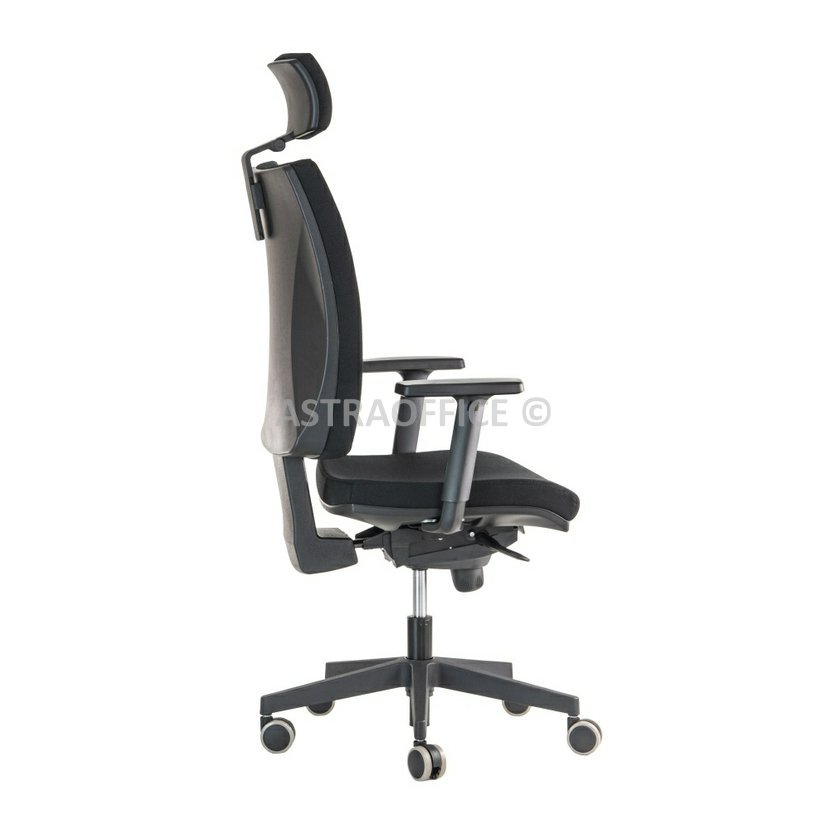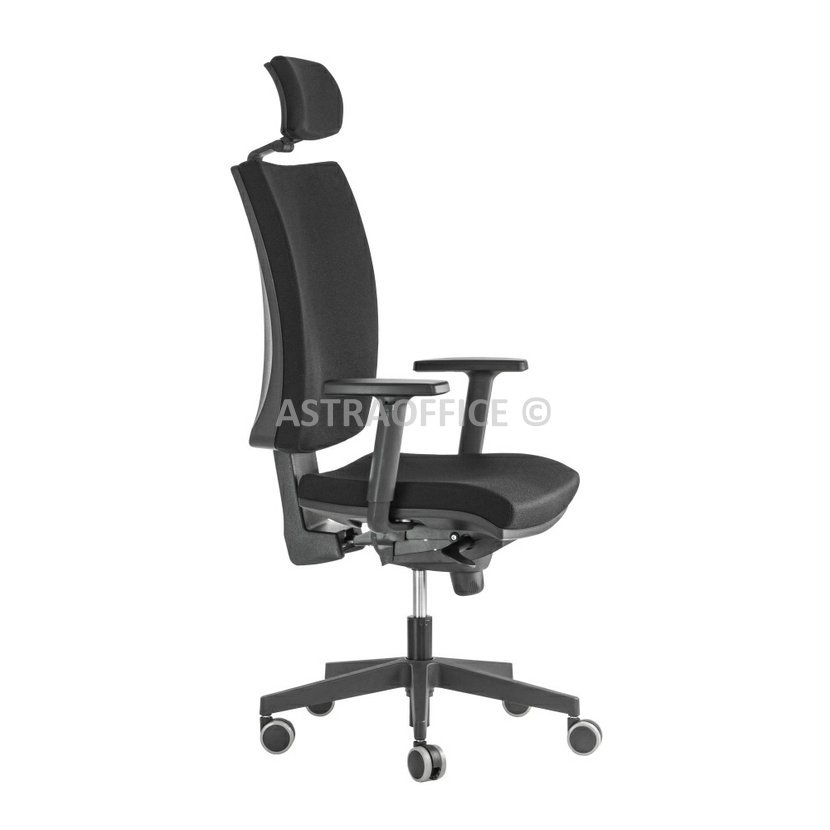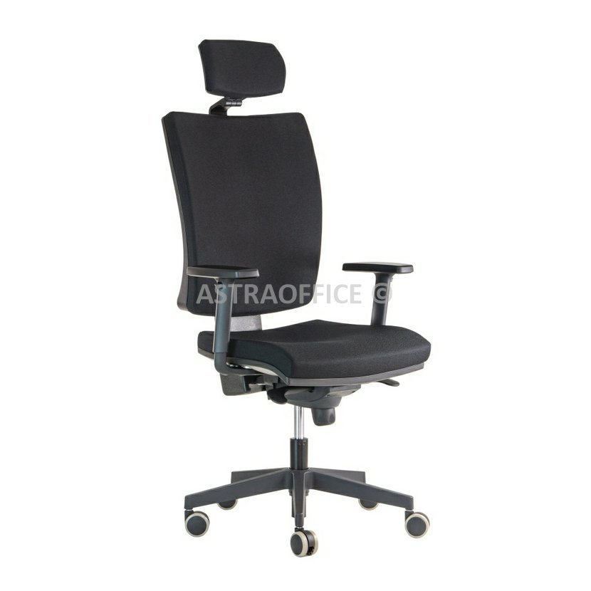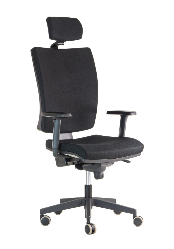 Kancelářská židle LARA VIP s kvalitní výplní z injektované pěny s vysokou odolností vůči prosezení. Injektovaná pěna je v sedáku, opěráku i podhlavníku. Velmi pohodlný model s prošitými detaily. Synchronní mechanika s blokací v 5 polohách a nastavením tuhosti přítlaku zad. Součástí jsou výškově nastavitelné područky s měkčeným topem a univerzální pogumovaná kolečka pro všechny typy podlah. kvalitní potahová látka Bondai 8033 černá, 150.000 cyklů vysoce odolná vstřikovaná (injektovaná) polyuretanová pěna v sedáku a opěráku prošité hrany čalounění synchronní mechanika s blokací v 5 polohách, nastavení tuhosti přítlaku zad výškově stavitelný opěrák UP-DOWN výškově a úhlově stavitelný čalouněný podhlavník výškově stavitelné područky s měkčeným topem nylonový černý kříž LOOP ø 64 cm velká univerzální pogumovaná kolečka ø 65 mm nosnost 130 kg záruka 5 let certifikovaný český výrobek dle ČSN EN 1335