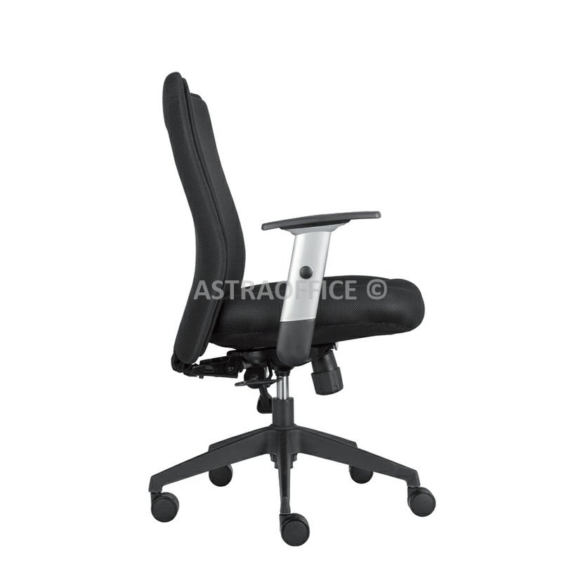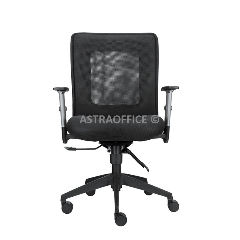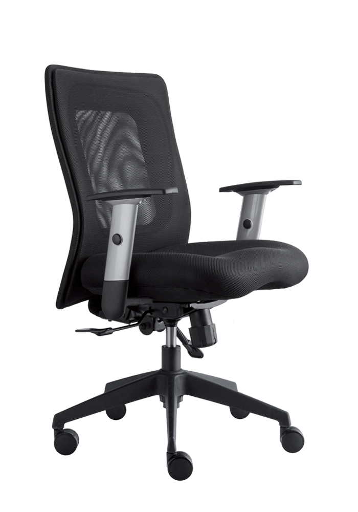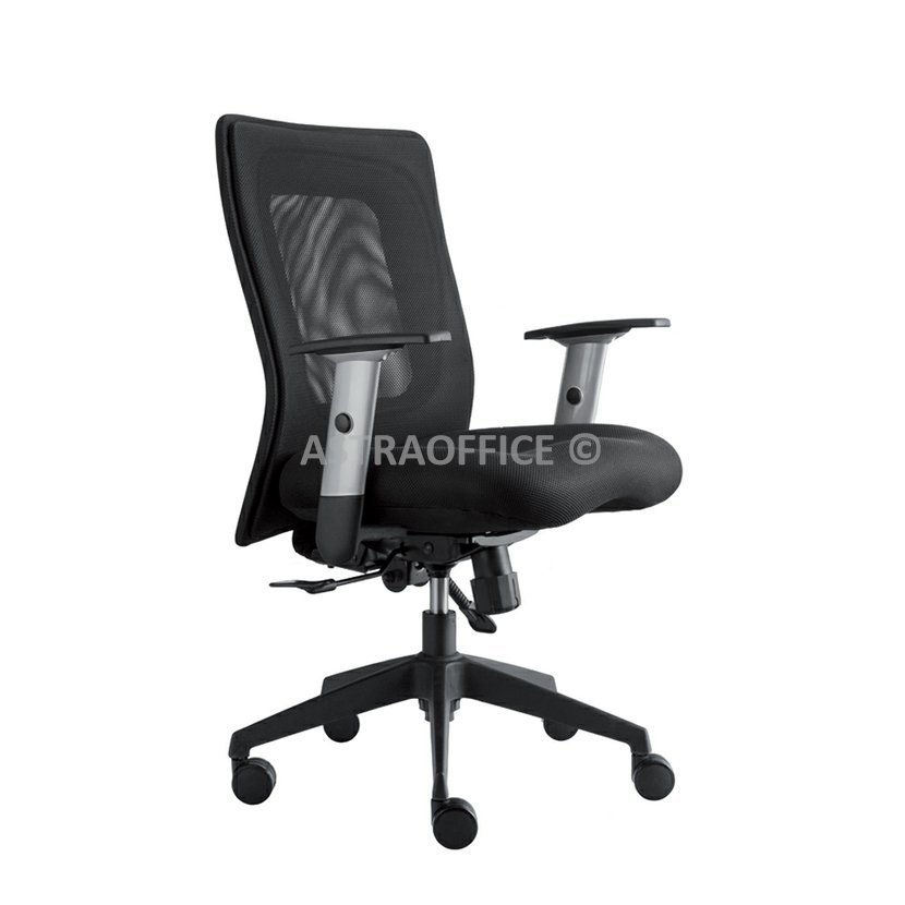 Kancelářská židle LEXA se síťovanými zády je vhodná pro občasné sezení do firem a domácností. Základem židle je synchronní mechanika s blokací v jakékoli poloze. Součástí židle je čalouněný sedák v prodyšném potahu MESH. Ve výbavě jsou výškově nastavitelné područky s plastovým topem. Židle je na nylonovém kříži s univerzálními kolečky pro všechny druhy podlah. potahová látka MESH černá synchronní mechanika s blokací v jakékoli poloze, nastavení tuhosti přítlaku zad síťovaný opěrák výškově stavitelné područky s plastovým topem nylonový kříž ø 640 mm pogumovaná kolečka ø 60 mm pro všechny druhy podlah nosnost 120 kg záruka 2 roky