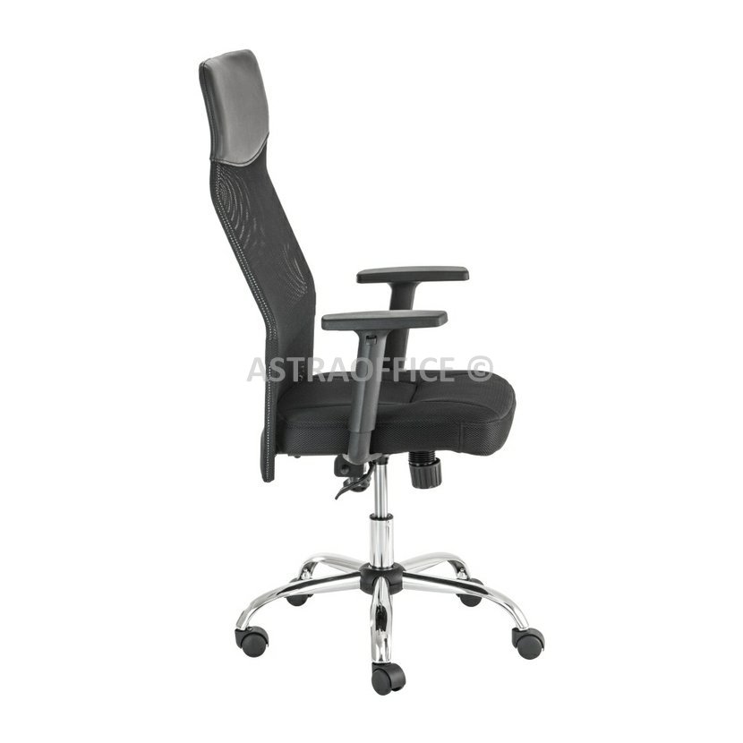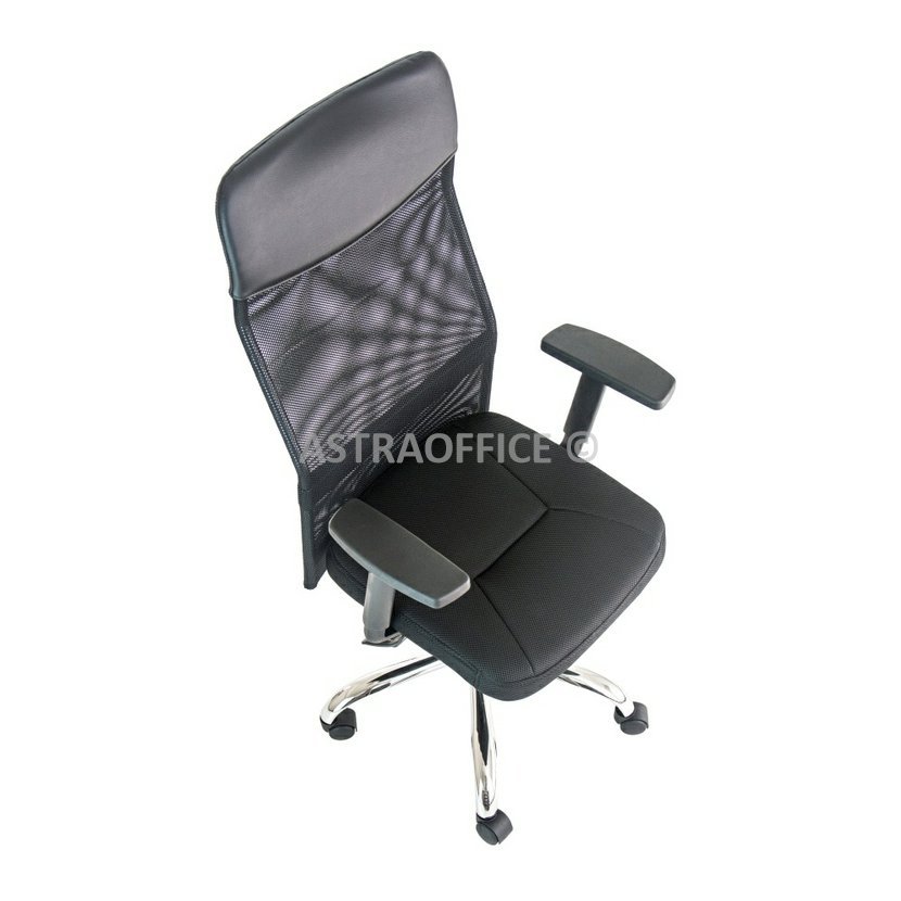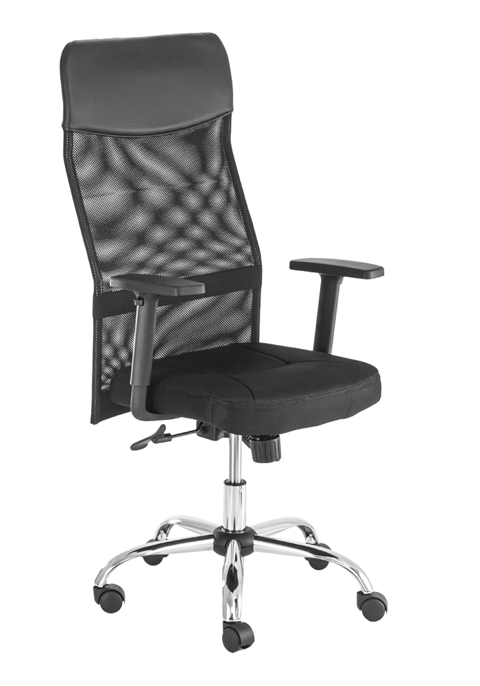 Kancelářská židle MEDEA je vhodná pro občasné sezení do firem a domácností. Základem židle je synchronní mechanika s blokací v jakékoli poloze. Součástí židle je čalouněný sedák v prodyšném potahu MESH, vysoký síťovaný opěrák s integrovanou hlavovou opěrkou v černé kožence, výškově nastavitelné područky s měkčeným topem. Židle je na ocelovém chromovém kříži s chromovým pístem a plastovými kolečky pro kobercové povrchy. potahová látka MESH černá synchronní mechanika s blokací v 5 polohách, nastavení tuhosti přítlaku zad vysoký síťovaný opěrák s čalouněnou hlavovou částí výškově stavitelné područky P44 s měkčeným topem ocelový chromový kříž ø 640 mm, chromový píst malá plastová kolečka ø 50 mm nosnost 120 kg záruka 2 roky