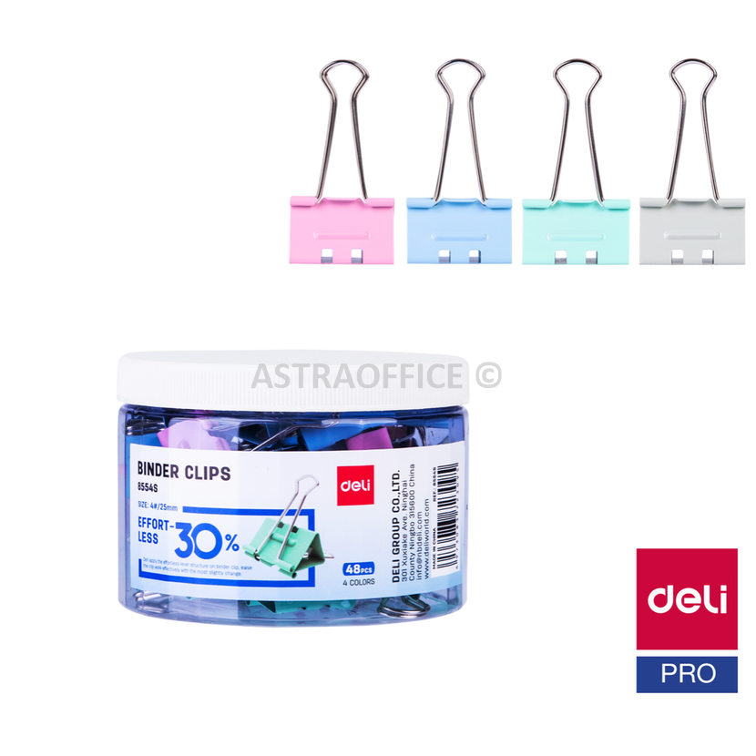Klip binder 25mm DELI "BEZ NÁMAHY" v dóze sada 48ks barevný