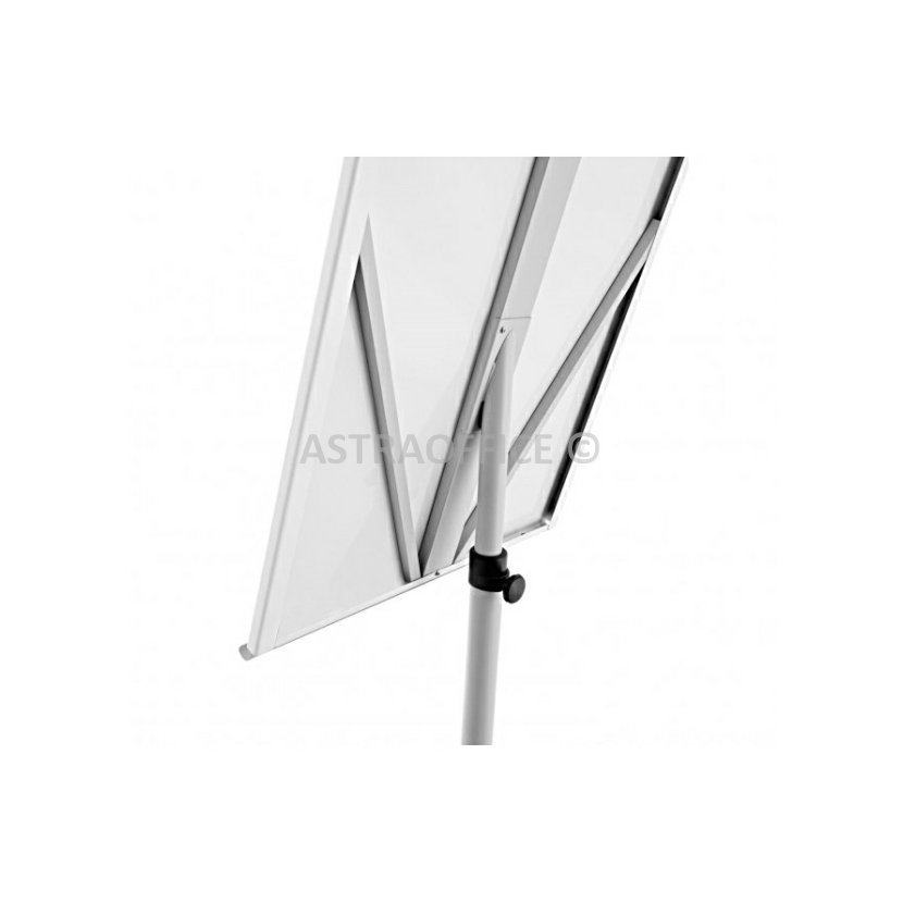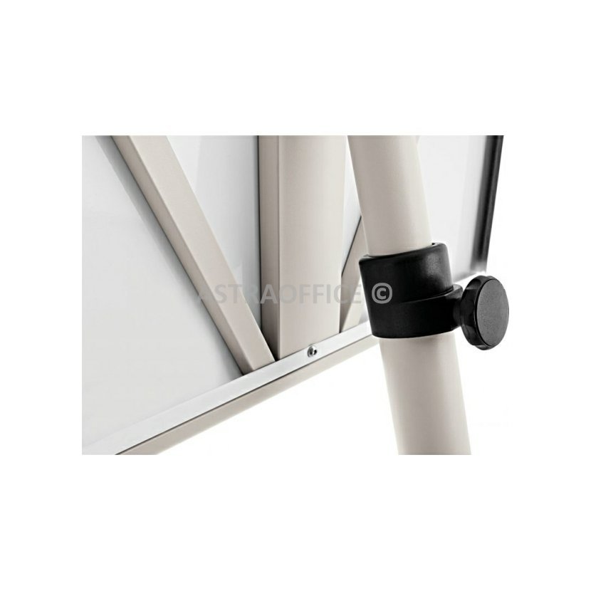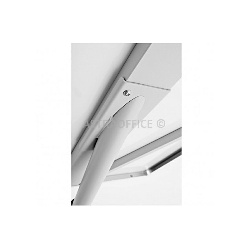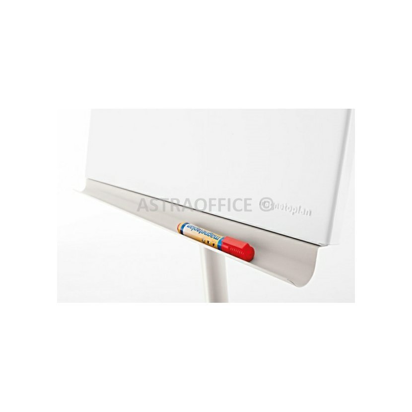 Mobilní Flipchart De Luxe s lehce stavitelnou výškou a výklopnými rameny. Součástí startovní sada příslušenství. Velmi snadná manévrovatelnost, vhodný pro prezentace, konference, výuku. Práškovým lakováním krytá, magnetická za sucha popisovatelná plocha velikosti 68 x 97 cm. Stabilní, kovová mobilní podstava s komfortně stavitelnou výškou v rozsahu 1,75 - 2,0 m. Sloup podstavy má uvnitř pružinu pro usnadnění pohybu. Výklopná ramena, zvětší prezentační plochu až na trojnásobek. Velmi snadno na sucho stíratelná stopa popisovače. Kovová zadní stěna, zaoblené hrany. Výklopná horní krycí plastová lišta, nastavitelné trny pro zavěšení papíru. Integrovaná, na okrajích otevřená odkládací lišta pro popisovače a příslušenství. Odolný obal pro bezpečný transport při dodání. Startovní sada obsahuje: popisovač, 3 listy flipchart papíru a 4 magnety.