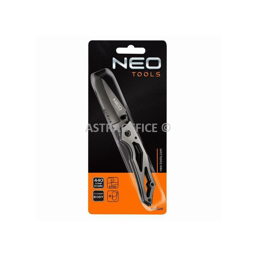 Zavírací nůž NEO TOOLS 63-025Skvělý nůž pro vaše výlety do přírody, kempování nebo i na zahradu. Čepel tohoto nože byla vyrobena z kvalitní oceli 440 o délce 7 cm. Titanové pouzdro zajišťuje dlouhou životnost. Zámek proti neočekávanému zavření zajišťuje bezpečnost při používnání. Kryt byl vyroben z nylonu pro snadné skladování a přepravu.Technické parametryDélka: 167 mmDélka čepele: 70 mmPočet lopatek: 1Rukojeť: TitanŠířka čepele: 27mmTyp čepele: jednoduchý