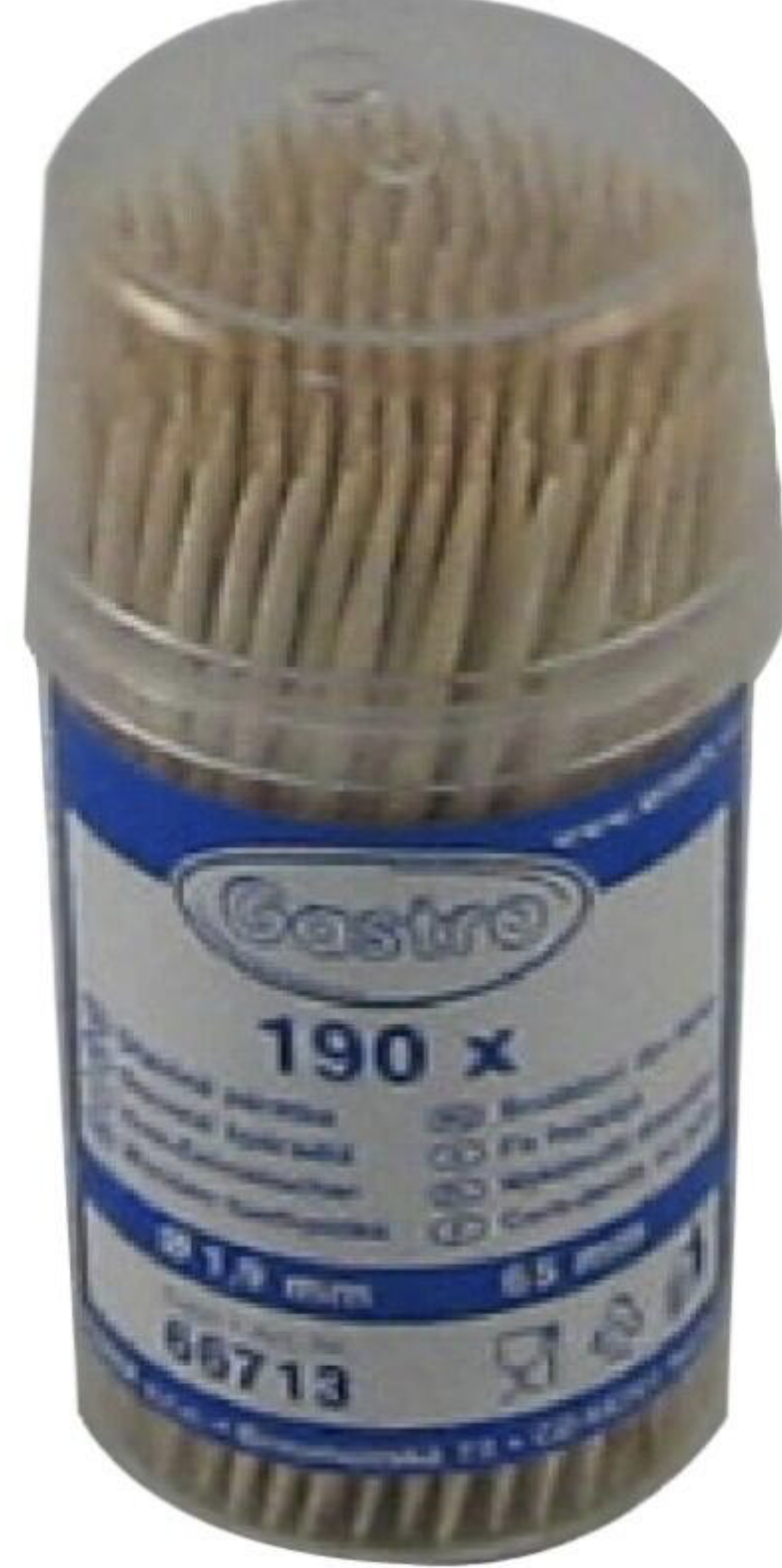 Dřevěná párátka hrocená kulatá v plastovém obalu. 190ks.