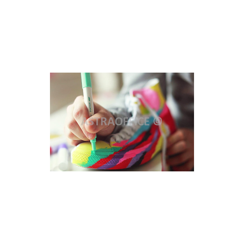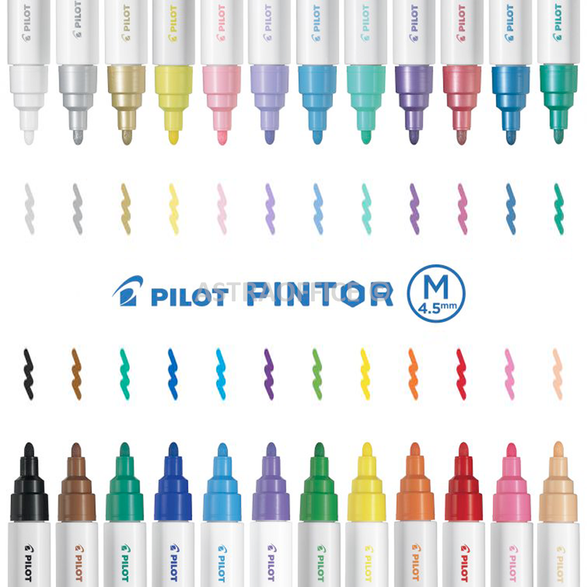 Zapojte vaši fantazii! Akrylový dekorační popisovač Pilot Pintor podporuje vaši představivost a kreativitu. Chcete změnit vaše oblečení, přetvořit různé předměty, přizpůsobit nábytek dle svého stylu nebo třeba ozdobit nyní tolik populární kamínky? Pilot Pintor přenáší všechny vaše nápady na různé materiály. Je ideální pro kreslení, barvení, zdobení, popisování, psaní, kaligrafii a další. Díky ultrakrycí síle pigmentového inkoustu na vodní bázi skvěle pokreslí a zbarví různé povrchy, a to i ty nejtmavší. Papír, dřevo, sklo, keramika, plast, kov, tkanina, kamínky... ...Pilot Pintor ozdobí různé materiály, včetně porézních a tmavých ploch. Pilot Pintor dodá barvy všude, kam chcete! K dispozici v 12 zábavných tónech plus 6 pastelových a 6 metalických - a čtyřech šířkách stopy: extra tenké EF (0,7 mm), tenké F (1,5 mm), střední M (2,2 mm) a široké B (8,0 mm). Pilot Pintor je připraven pro vaši fantazii - dekoraci, kresby na různé materiály, umí změnit barvy předmětů a dodat jim zcela nový vzhled... Píše a kreslí na různé povrchy