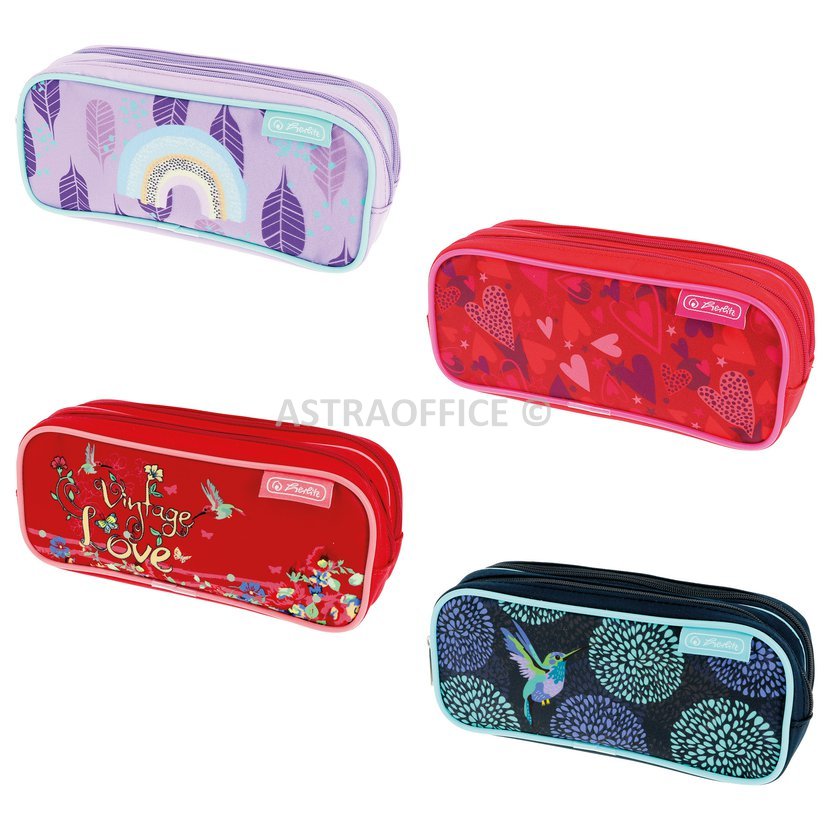 Pouzdro dvojité, mix motivů holky se dvěma kapsami na zip, 21 x 6,5 x 9 cm, prázdný, mix motivů:srdce, ptáčci, květinky, peříčka