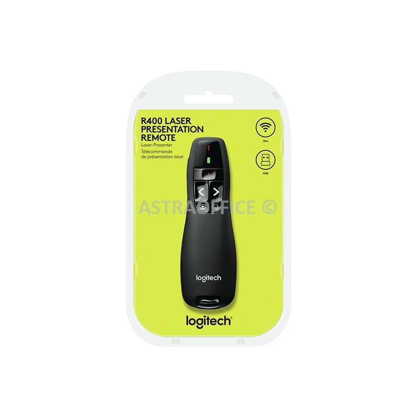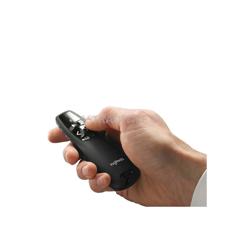 Prezentér Logitech R400MĚJTE PREZENTACI PEVNĚ POD KONTROLOUErgonomický tvar perfektně padne do ruky a tlačítka snadno nahmatáte, aniž byste se museli odvrátit zrak od plátna. Díky intuitivnímu ovládání udržíte pozornost publika od úvodního až po závěrečný snímek.ČERVENÝ LASER PRO JASNÉ ZVÝRAZNĚNÍZvýrazněte klíčové body prezentace pomocí červeného laserového ukazovátka, které vaše publikum snadno uvidí. Při prezentaci na TV nebo LCD obrazovkách může být laser méně viditelný kvůli odrazům – v takovém případě doporučujeme digitální ukazovátko (Laserový produkt třídy 2 s maximálním výkonem 1 mW (spojitá vlna)).VOLNÝ POHYB BEZ OMEZENÍDosah až 15 metrů (50 stop) vám umožní volně se pohybovat během prezentace. Skutečný dosah se může lišit podle podmínek prostředí a způsobu používání. Ukazatel stavu baterie vám navíc pomůže, aby vás prezentér nezradil v té nejméně vhodné chvíli. Proměnit běžnou prezentaci v nezapomenutelný zážitek.Technické specifikace ovladače: .popisTabulka td { border: 1px solid #252424; min-width: 5rem;padding: 0.15rem 0.35rem; } .popisTabulka tr:nth-of-type(2n) { background-color: #e3e9eb; } Laser:nbsp; 2.třídy Max. Výkon:nbsp; méně než 1mWVlnová délka:640 - 660 nm (červené světlo)Rozhraní:2.4 GhzDosah:15 m Napájení:nbsp; 2 x AAA baterie Životnost baterií (laserové ukazovátko):nbsp; 20 h Životnost baterií (prezentační zařízení):nbsp; 1050 h Barva:černáRozměr:115.5 x 37.8 x 27.4 mmHmotnost:57 g .popisTabulka td { border: 1px solid #252424; min-width: 5rem;padding: 0.15rem 0.35rem; } .popisTabulka tr:nth-of-type(2n) { background-color: #e3e9eb; } Technické specifikace přijímače: Barva:nbsp; černá Rozměr:nbsp; 58.6 x 16.5 x 7.9 mmHmotnost:6 g nbsp; nbsp; nbsp; nbsp; .popisTabulka td { border: 1px solid #252424; min-width: 5rem;padding: 0.15rem 0.35rem; } .popisTabulka tr:nth-of-type(2n) { background-color: #e3e9eb; } nbsp;nbsp;