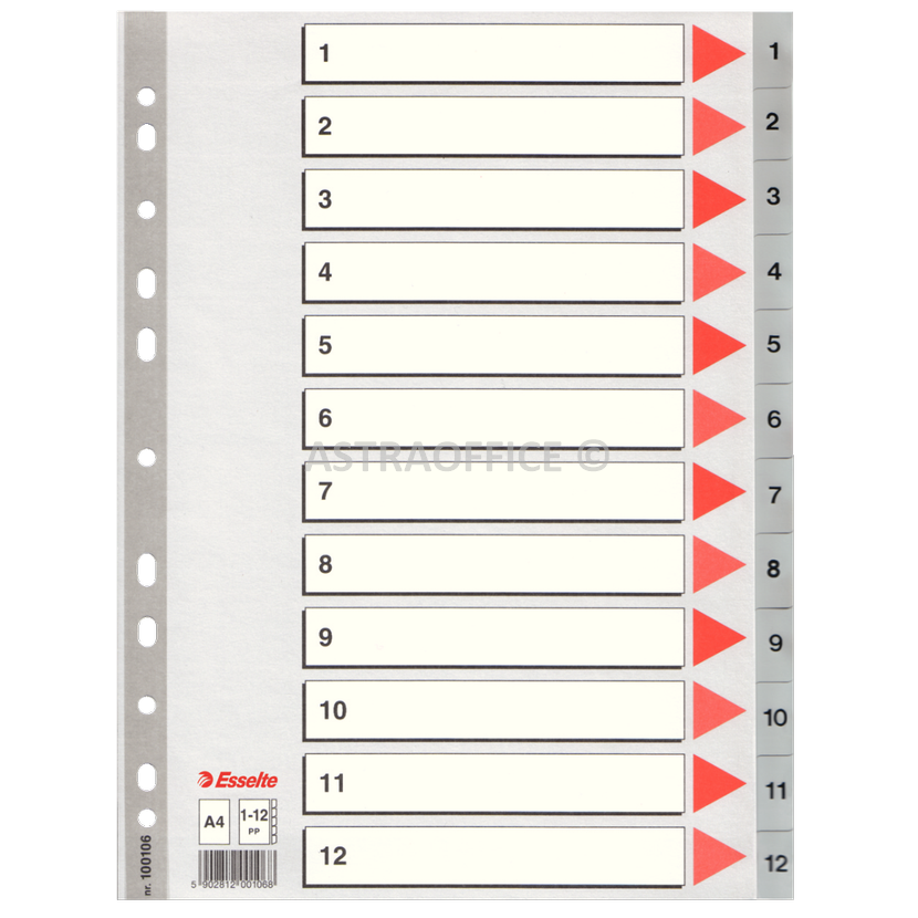 Parametry produktu Rozlišovač plastový Esselte A4 100106 1-12