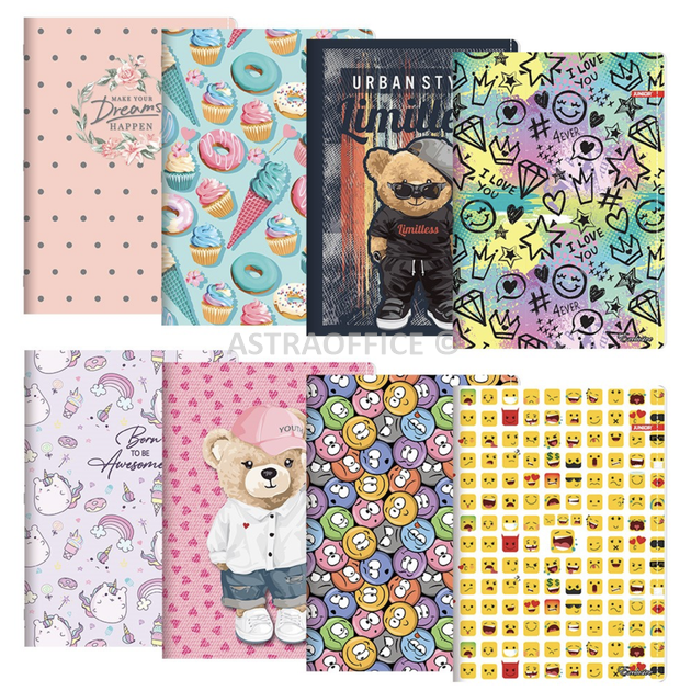 Linkovaný sešit A5 544 40 listů s motivovými deskami.