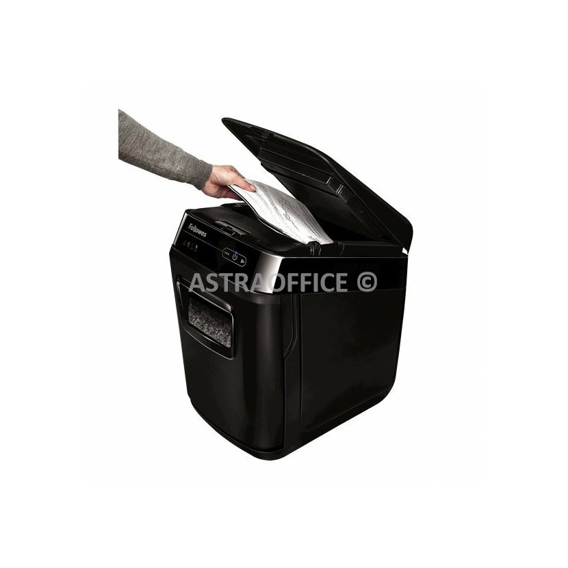 Automatický stroj. Křížový řez 4 x 38 mm, vstup 230 mm, kapacita zásobníku až 200 listůpapíru, objem koše 32 L. Schopnost skartace: volný, sešitý nebo sepnutý papír, platební karty, CD/DVD. Ruční podání až 10 listů. Cert NBÚ.