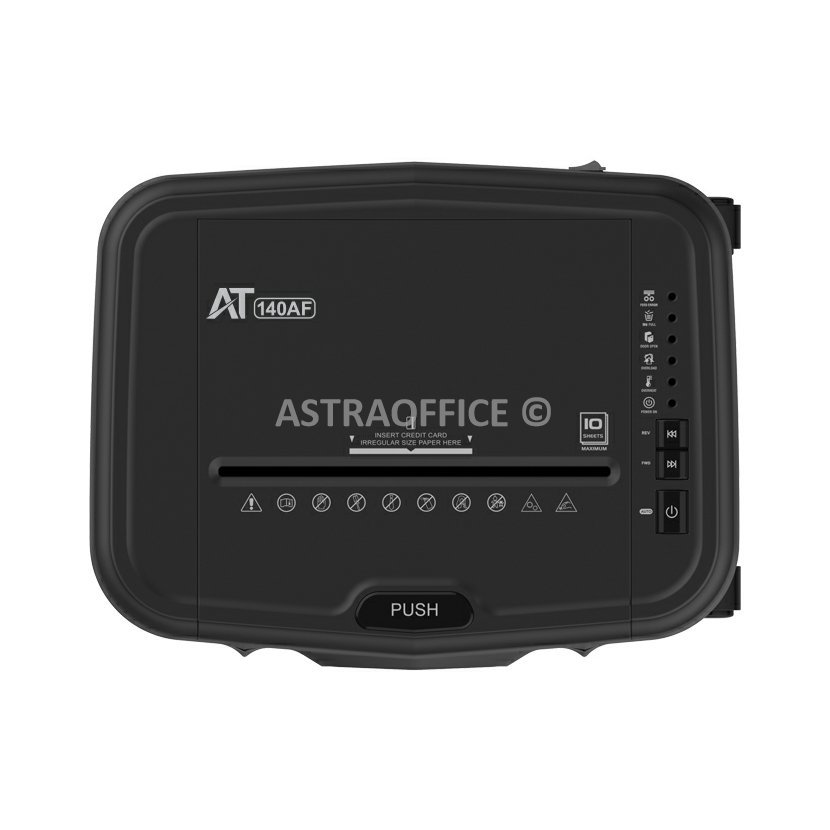 AT-140AF je výkonný skartovací stroj s automatickým podavačem, navržený pro efektivní a bezpečné skartování dokumentů v kancelářském prostředí. Nabízí kompaktní rozměry, přesto pojme až 150 listů papíru A4 (70 g/m2) a pracuje s příčným řezem 2 × 12 mm.Výkonná a vytrvalá skartaceDíky technologii AutoFeed můžete jednoduše vložit štos papíru, zavřít víko a nechat stroj pracovat samostatně. Skartovač zvládne i papíry sešitými kancelářskou sponkou v rohu. Maximální doba nepřetržité skartace je 60 minut (automatický podavač) a 10 minut (manuální podavač).Skartovací cyklusKapacita zásobníku umožňuje skartaci až 60 minut v kuse bez přerušení. Skartování probíhá automaticky a tiše (60 dB).Bezpečnostní úroveň DIN P5Stroj splňuje vysoký stupeň zabezpečení DIN P5 dle normy DIN 66399, což zajišťuje efektivní ochranu důvěrných dat.Jednoduché ovládání s LED indikacíHorní ovládací panel je intuitivní a obsahuje LED kontrolky, které signalizují: Plný koš Zaseknutý papír Přehřátí Otevřený koš Zapnutý stav zařízeníExpresní skartace během automatického provozuBěhem skartace ze zásobníku lze paralelně manuálně vložit až: 11 listů (70 g/m2) 9 listů (80 g/m2) Kreditní kartuInteligentní podávací mechanismusZásobník si poradí i s lehce zaprášenými nebo občasně sešitými dokumenty. Maximální objem zásobníku je 140–150 listů.Odpadní nádoba a manipulace Kapacita koše: 19 litrů Výsuvný systém pro snadné vyprazdňování Průhledné okénko pro optickou kontrolu naplnění Pojezdová kolečka pro jednoduchý přesunTechnické specifikace Šířka vstupu: 220 mm Typ řezu: příčný řez 2 × 12 mm Kapacita zásobníku: 150 listů (A4, 70 g/m2) Stupeň utajení: DIN P5 Max. doba provozu: 60 minut (automatický), 10 minut (manuální) Hluk: 60 dB Objem koše: 19 litrů Funkce LED indikace (plný koš, přehřátí, zaseknutí atd.)Klíčové vlastnosti skartovače AT-140AF Automatický a manuální podavač Kapacita až 150 listů (A4/70 g/m2) Skartace kreditních karet Skartace dokumentů se sponkami Výsuvný koš s průzorem Stupeň utajení P-5 Pojezdová kolečka LED kontrolky provozuAT-140AF je ideální řešení pro všechny, kdo hledají kombinaci pohodlí, automatizace a vysokého stupně zabezpečení při skartaci dokumentů.