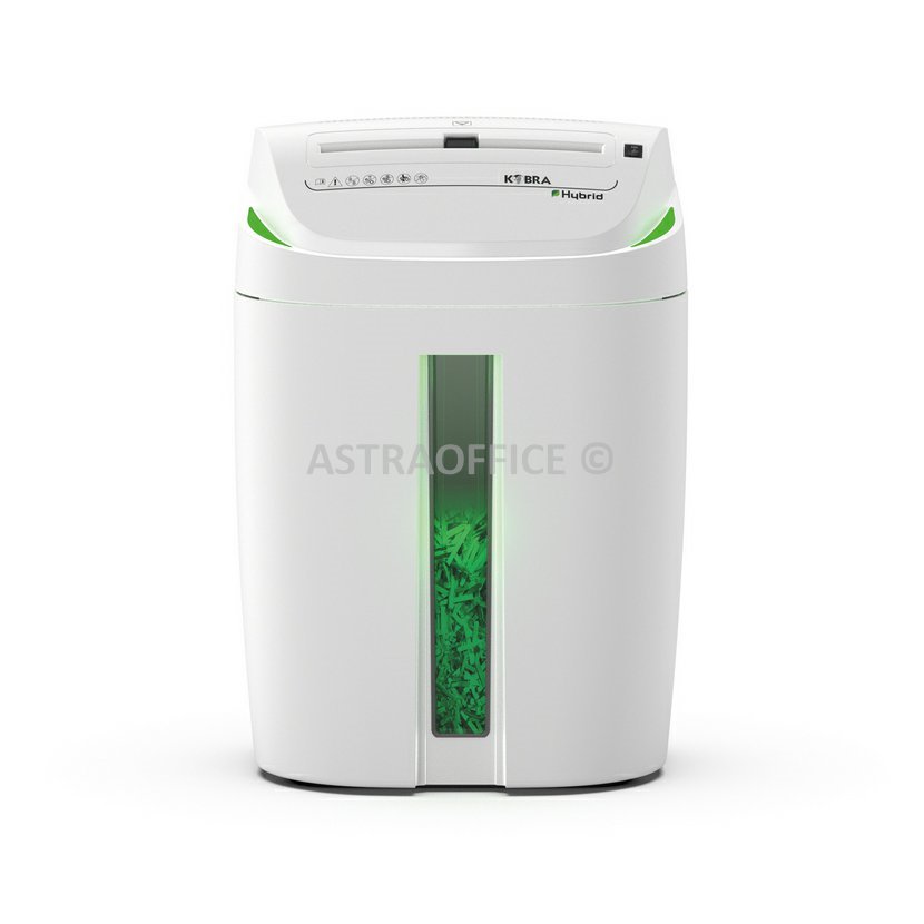 KOBRA S4-HYBRID je inovativní skartovačka dokumentů s moderním designem vybavená nejnovější technologií Hybrid Power Management System, která umožňuje až 15 % skartování díky uložené energii. Tato exkluzivní technologie umožňuje provoz při využití uložené energie, kdy již před koncem skartace dojde k automatickému odpojení od hlavního zdroje.Skartovačka KOBRA S4-HYBRID dokáže najednou skartovat až 22 listů papíru, CD/DVD a kreditní karty. Spolehlivé a odolné mechanismy s vysoce účinným motorem umožňujícím nepřetržitý 24h provoz bez přehřívání, nože z tvrzené oceli si poradí i se sešívacími a kancelářskými sponkami. Zajišťují bezkonkurenční výkon spolu s nejatraktivnějším designem a LED technologií. Díky Systému „Oil-Free“ není nutné mazat řezné nože.Praktickou 40 litrovou nádobu lze vyjmout bez zvedání řezací hlavy, má průhledné osvětlené přední okénko pro kontrolu naplnění odpadního koše, nevyžaduje plastové sáčky. Zařízení Safety Stop detekuje vytažení koše a automaticky zastaví řezací jednotku.