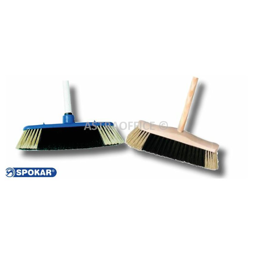 Smeták s plastovým tělesem a syntetickými vlákny. Kovová potahovaná hůl 120 cm.