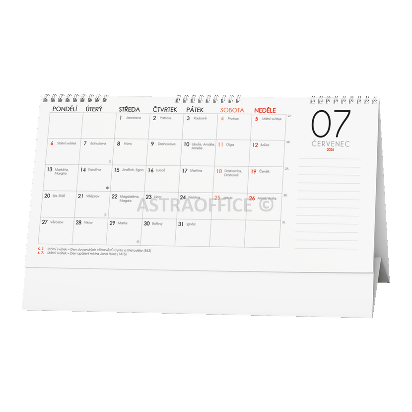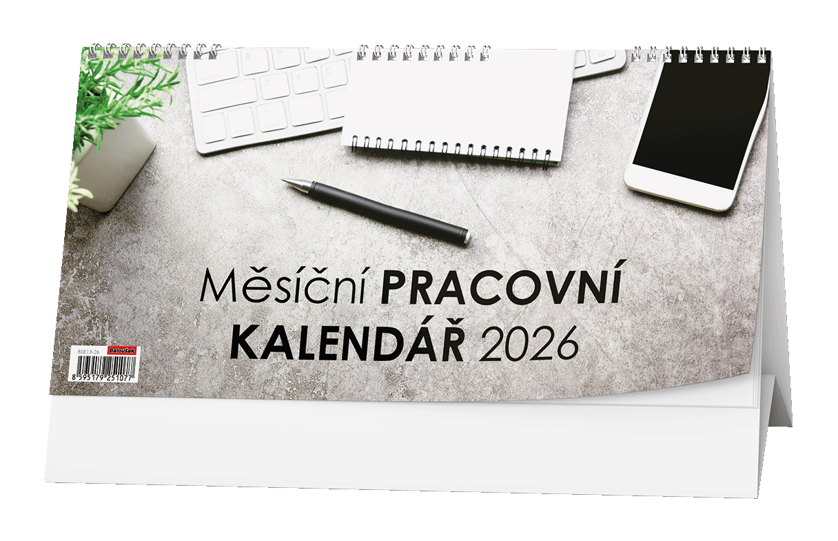 Výjimečný stolní kalendář s přehledným měsíčním kalendáriem a prostorem na poznámky., Papír: ofset, 100g/m2 Obálka: křída lesk 135 g/m2 Stojánek je z kvalitní bílé lepenky 600g/m2 Dělená kovová spirála "twin wire", Kalendárium: Týdenní, Počet stran: 15, Rozměry: 300x150