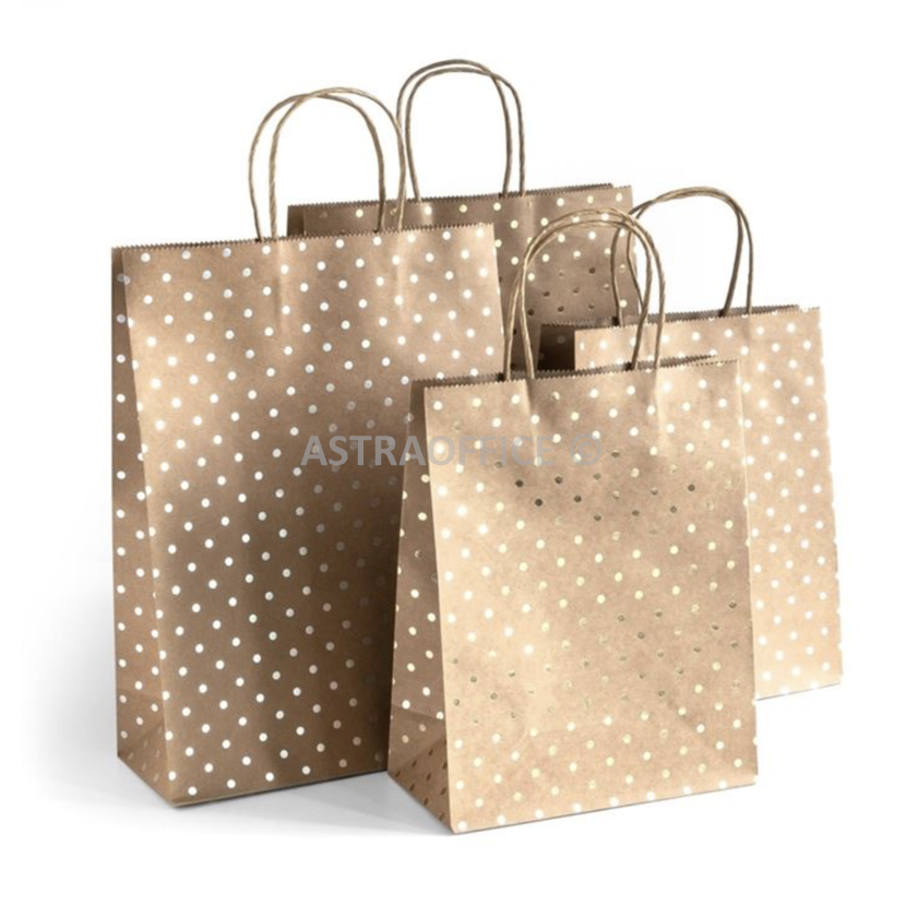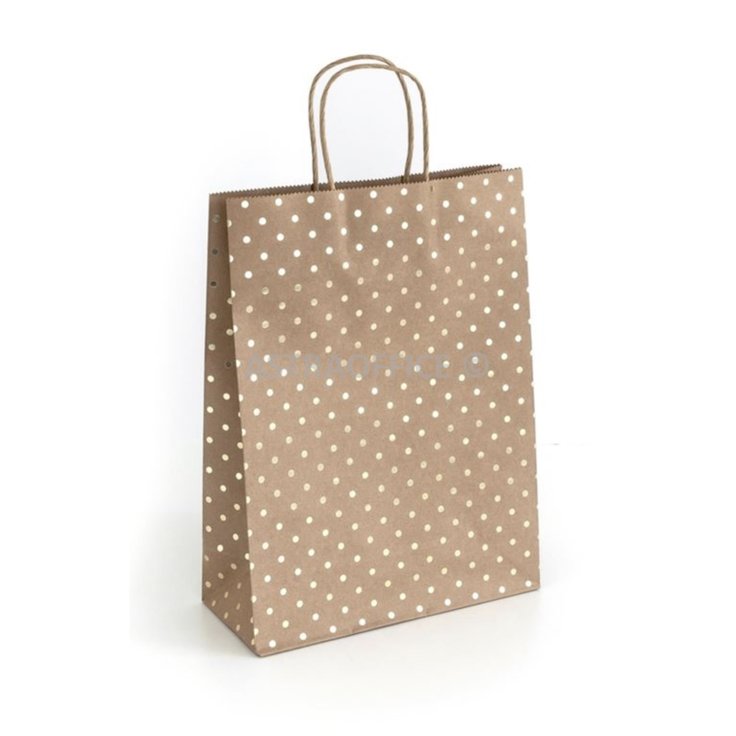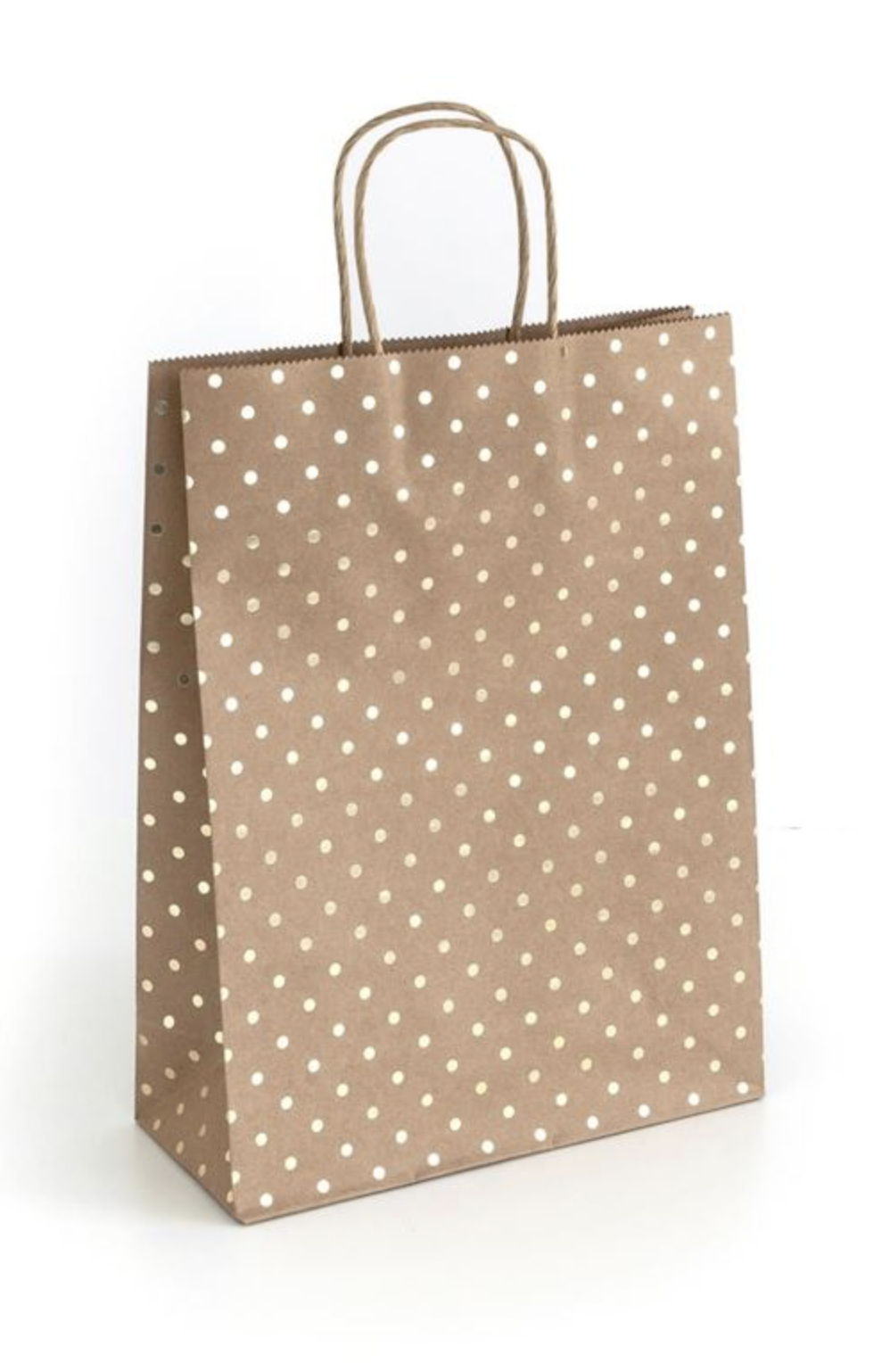Taška papírová "L" 33x24cm kraft sada 5 ks zlaté puntíky