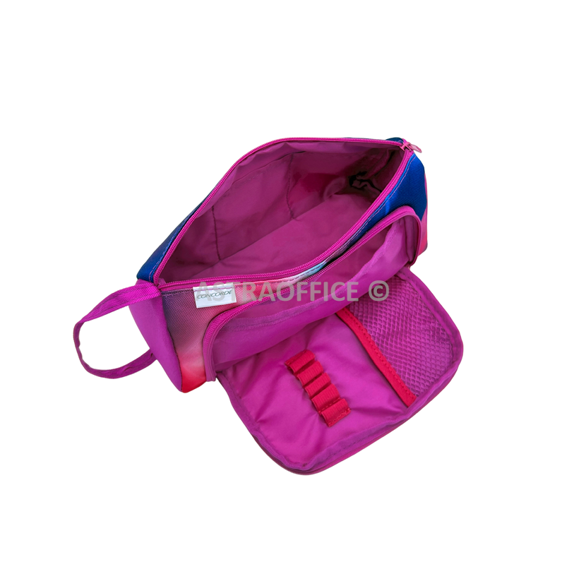 Designová taštička s abstraktním vzorem a postranní kapsičkou. Objemný odkládací prostor uzavíratelný na zip. Taštička je vhodná na kancelářské a školní potřeby, ale i kosmetiku nebo další nezbytnosti. Vnitřní odkládací prostor obsahuje tři malé otevřené kapsičky vhodné na malé drobnosti. Postranní kapsa uzavíratelná na zip disponuje 5 smyčkami na psací potřeby. Rozměr taštičky 22x8x10 cm.