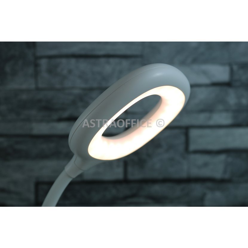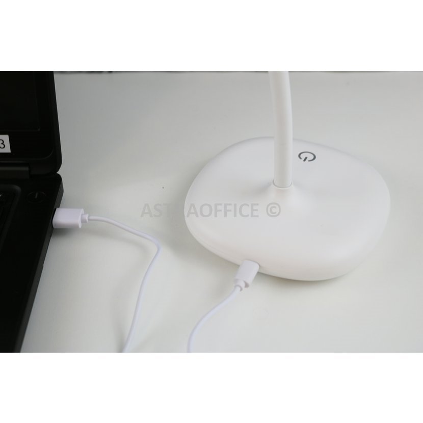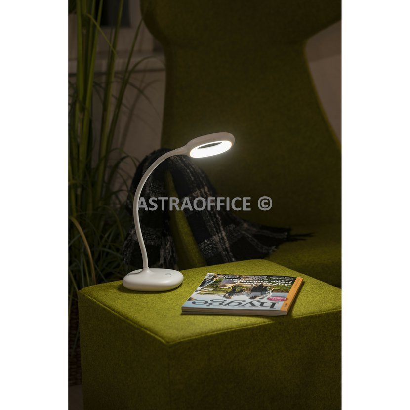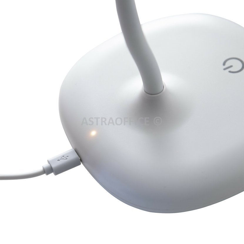 Unilux - Lampa stolní Unilux Galy bílá LED, 418 lumenů, 3 W, 139 lm/W, 80 CRI, 4100 K, 500 lux, 50000 hod, změny intenzity svtěla, USB port, součástí je kabel, kompaktní velikost ABS plastová základna a hlava, kovové rameno s pogumovaným povrchem