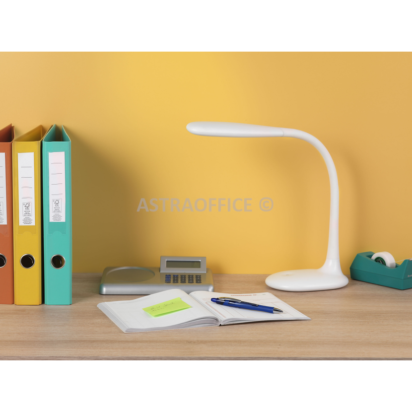 Unilux - Lampa stolní Unilux Lucy bílá LED 450 lum, 5000 K, 1055 lux, 30000 hod, možnost nastavení teploty barev a intenzity světla, energeticky šetrná, základna a hlava 19 cm z ABS plastu, kovové rameno 38 + 23 cm s gumovým povrchem