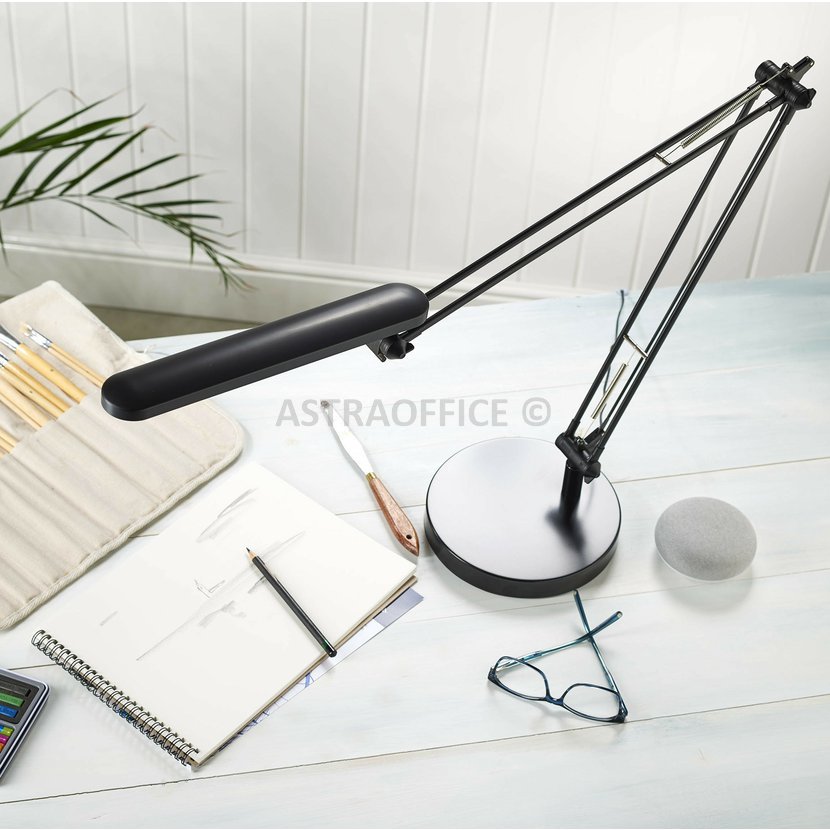 Unilux - Lampa stolní Unilux Mamboled černá LED, s flexibilním ramenem 41 cm, noha 41 cm, šířka podstavce 19 cm, umožňující pohyb hlavy 28 cm, 665 lumenů, 7 W, 95 lm/W, 1225 luxů, 40 000 hodin, 84 CRI, 2900K, možnost otočení a záklon ramene a hlavy, ocelová základna a ABS plastové rameno a hlava