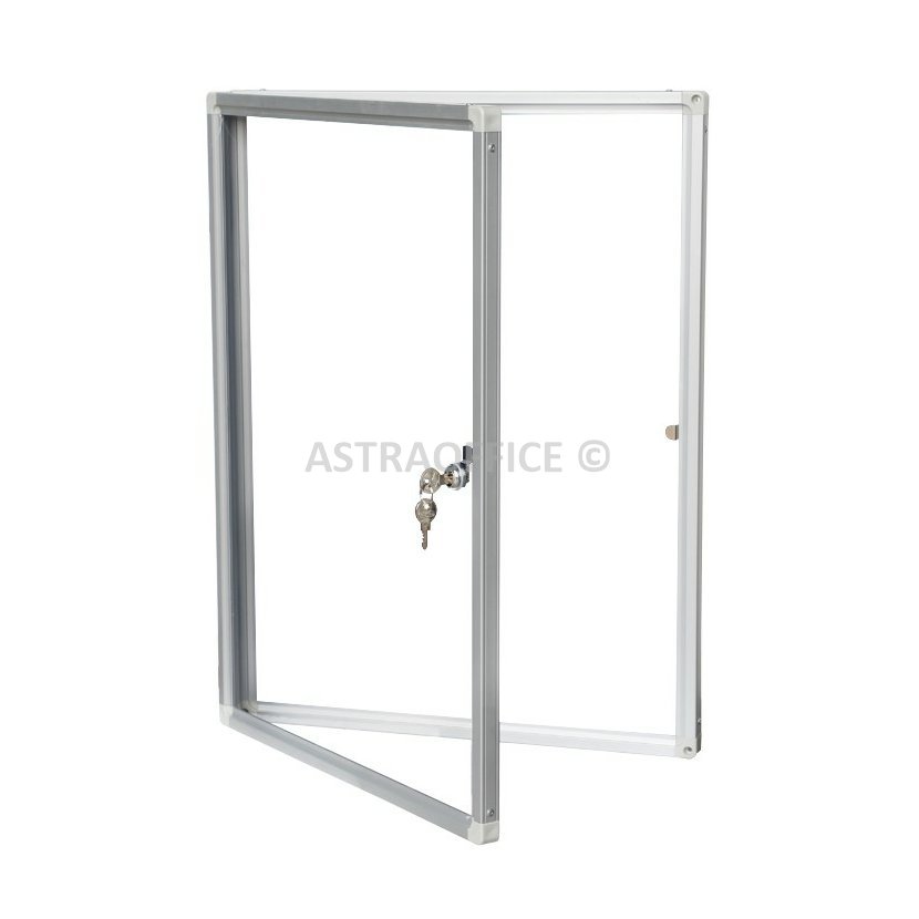 Interiérová vertikální vitrína ECO s robustním hliníkovým profilem UKF, plastovými rohovými spojkami. Vnitřní výplň magnetický lakovaný bílý plech . Polykarbonátové sklo. Uzamykatelná pomocí patentního klíče.Vnější rozměr: 90 x 60 cmHloubka vitríny: 1,5 cm