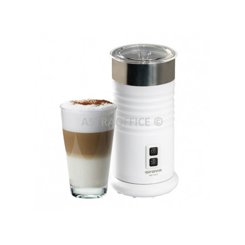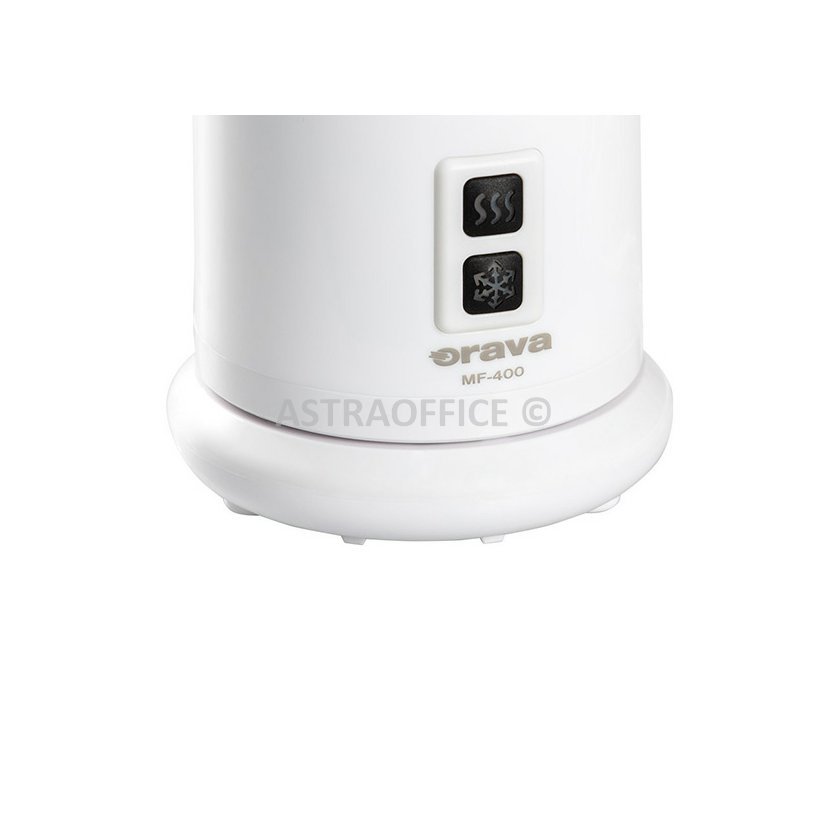 nbsp;S našim napěňovačem vykouzlíte pochoutku, která lahodí stejně jazýčku i očím. Orava MF-400 je vhodný pro přípravu caffe latte, kapučína nebo macchiata i ledové kávy. Má odnímatelný podstavec jako při varné konvici, pro ohřev. Umožňuje zpracovat až 115 ml mléka pro šlehání a až 240 ml mléka pro ohřev. Pěnič disponuje 2-funkčním přepínačem se světelnou indikací a topným dnem se zakrytou topnou spirálou. Práci s ním usnadňuje průhledný krýt se silikonovým těsněním a osvětlení tlačítek. Při nečinnosti se pěnič automaticky uvede do pohotovostního režimu. Snadné čištění potěší snad celou rodinu.