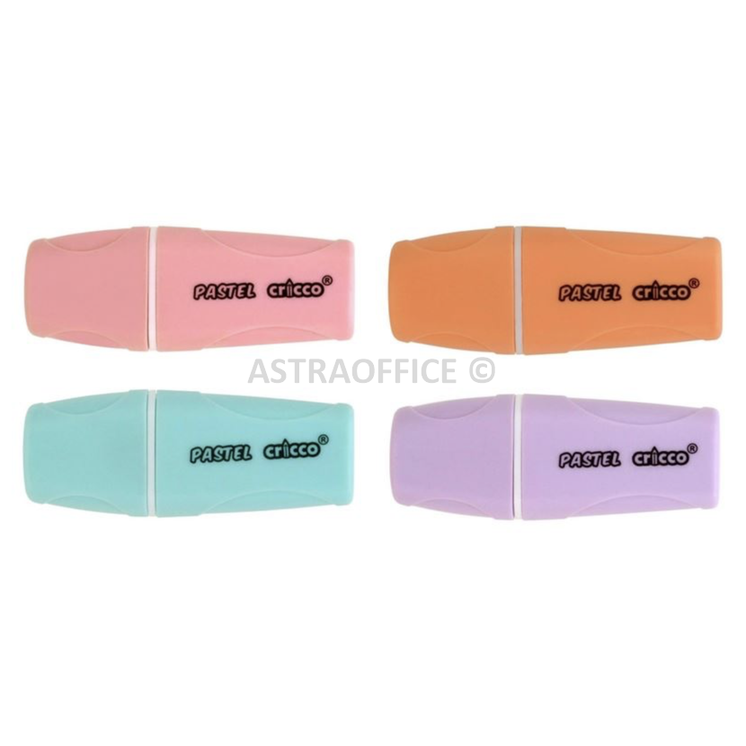 • Miniaturní zvýrazňovače Cricco v jemných pastelových barvách: modrá, růžová, oranžová a fialová v plastovém pouzdře